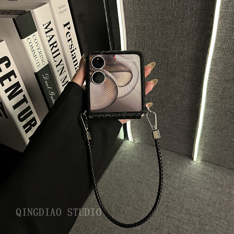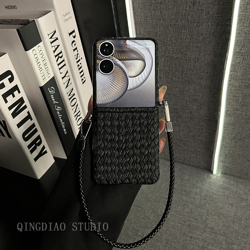 轻调 高级感暗黑草席纹手提绳适用于小米MIX Flip2手机壳全包新款MIX限量版flip折叠屏翻盖防摔ins小众保护套