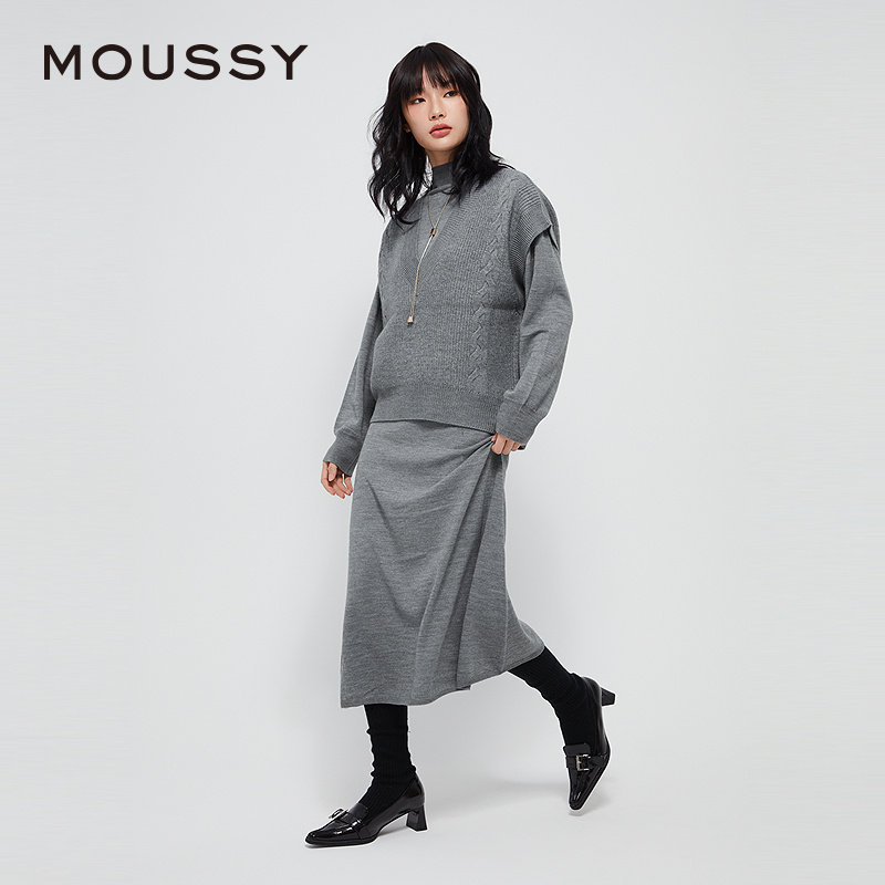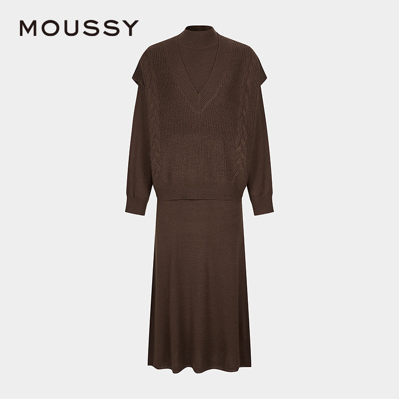 moussy 冬季新品简约通勤风两件套针织连衣裙女028HAZ70-1301