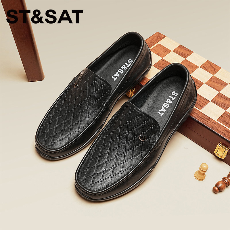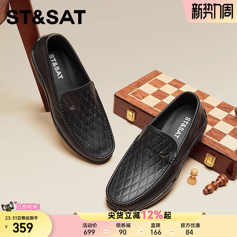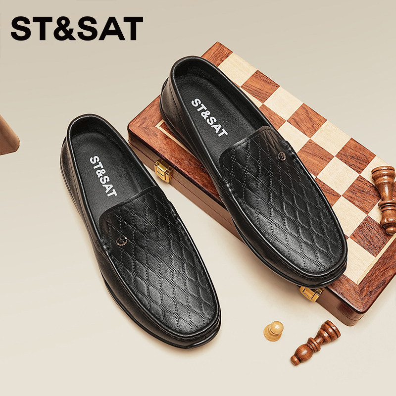 星期六新款男士商务休闲百搭真皮乐福鞋一脚蹬软底懒人豆豆鞋黑色