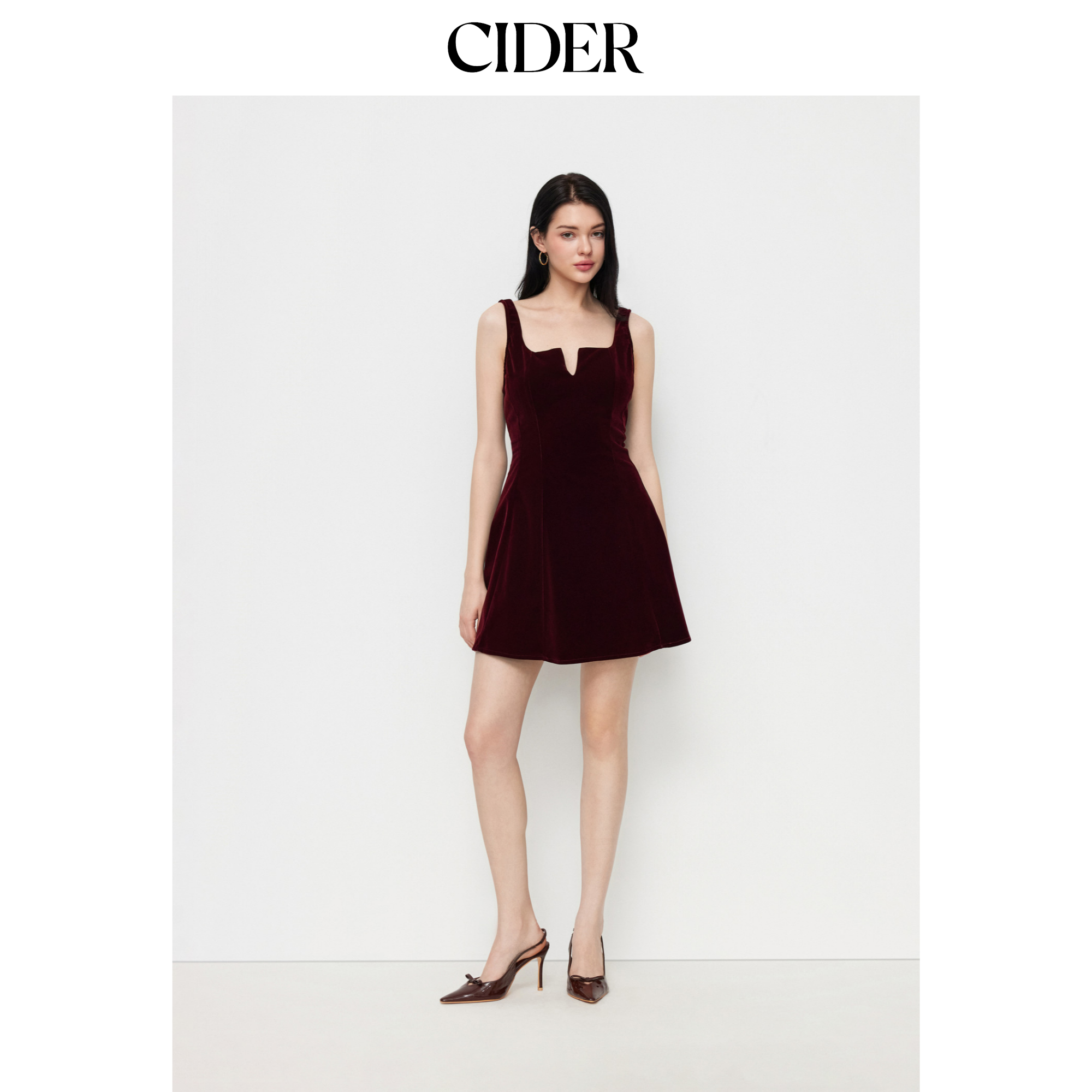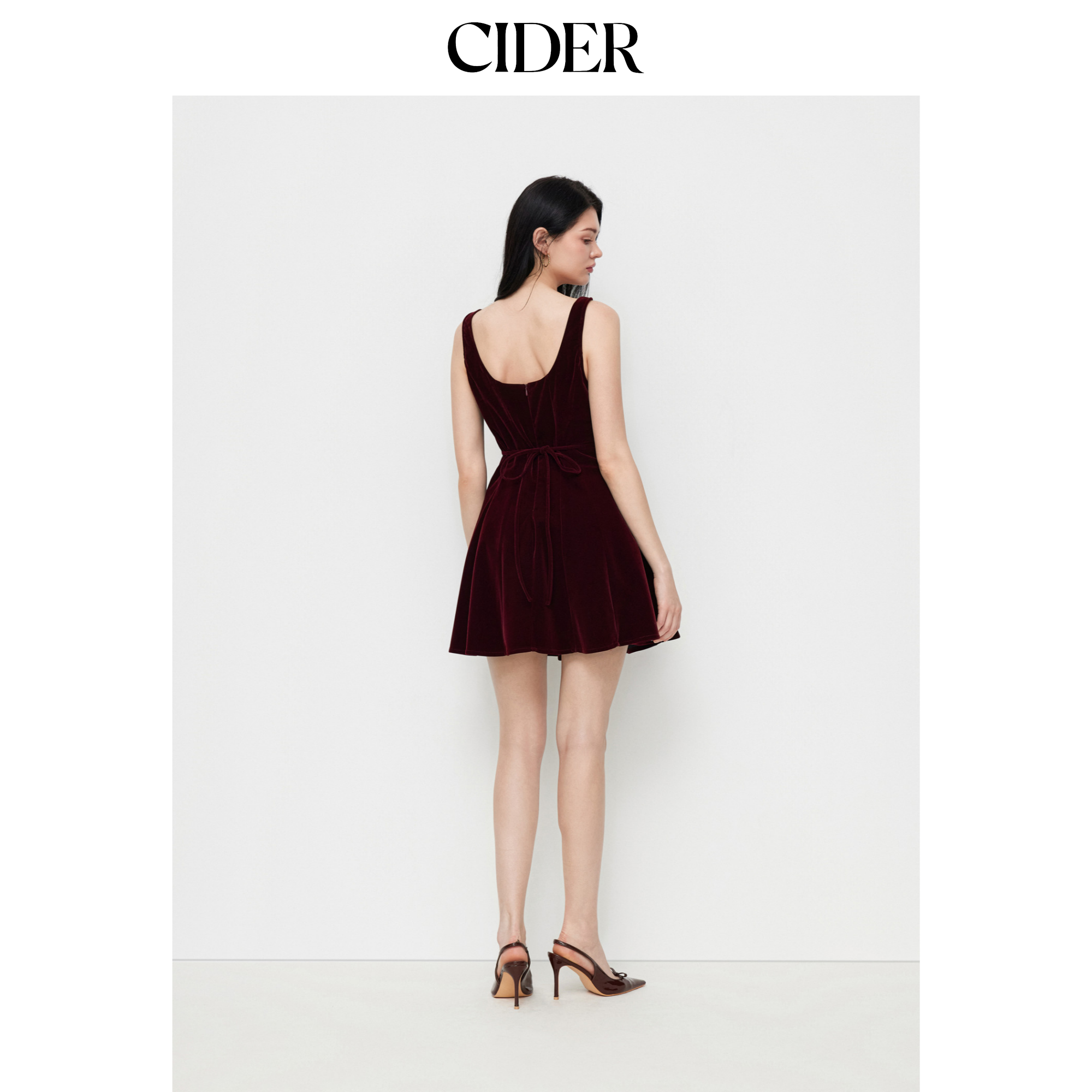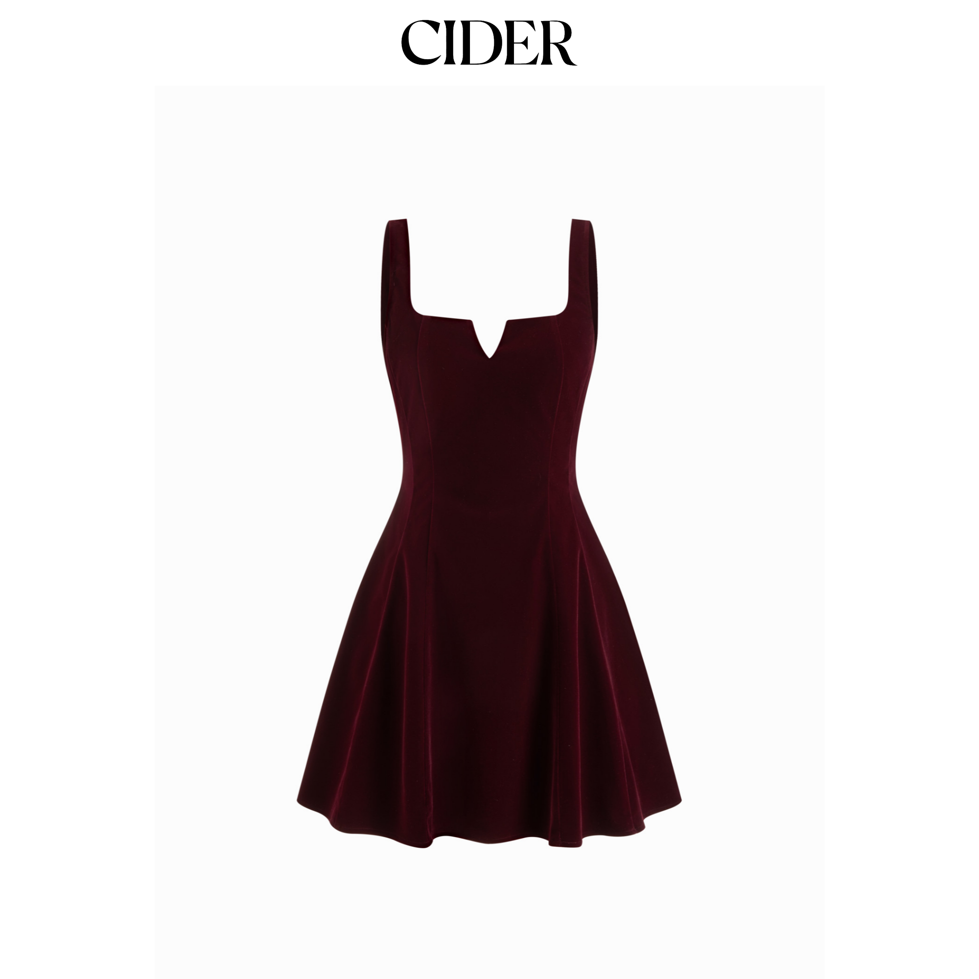 CIDER丝绒V领荷叶边短款迷你方领无袖性感连衣裙小礼服114736995