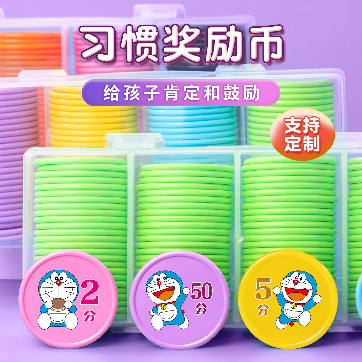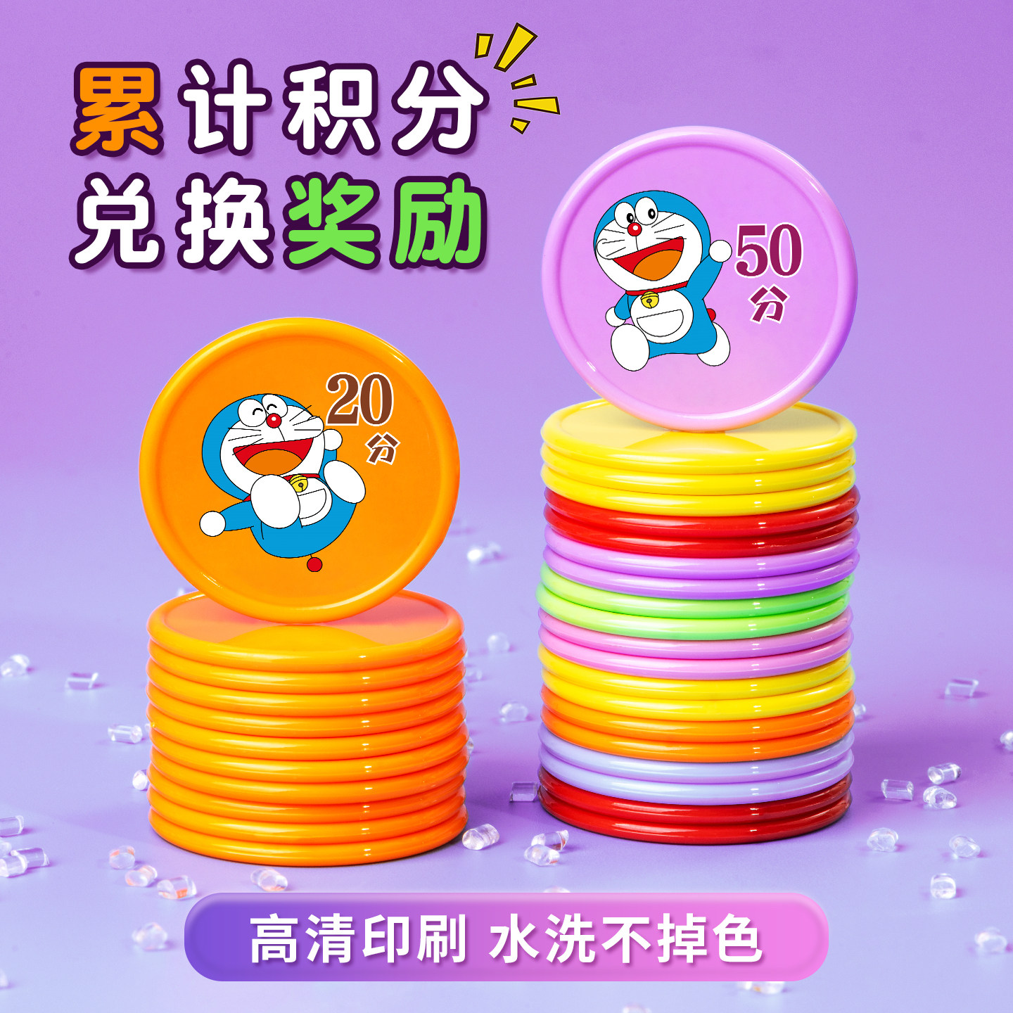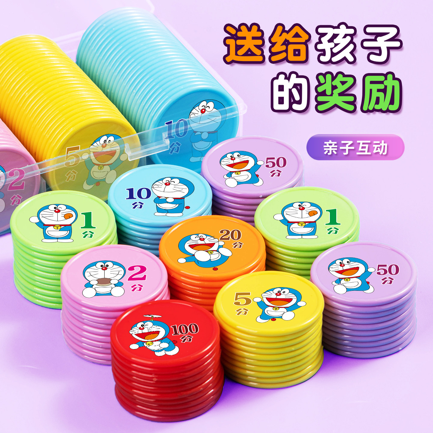 积分卡小学生儿童奖励积分卡奖励盒装塑料小圆片卡通奖励币兑换币老师鼓励兑换教师教学奖励蓝猫学习奖励兑换