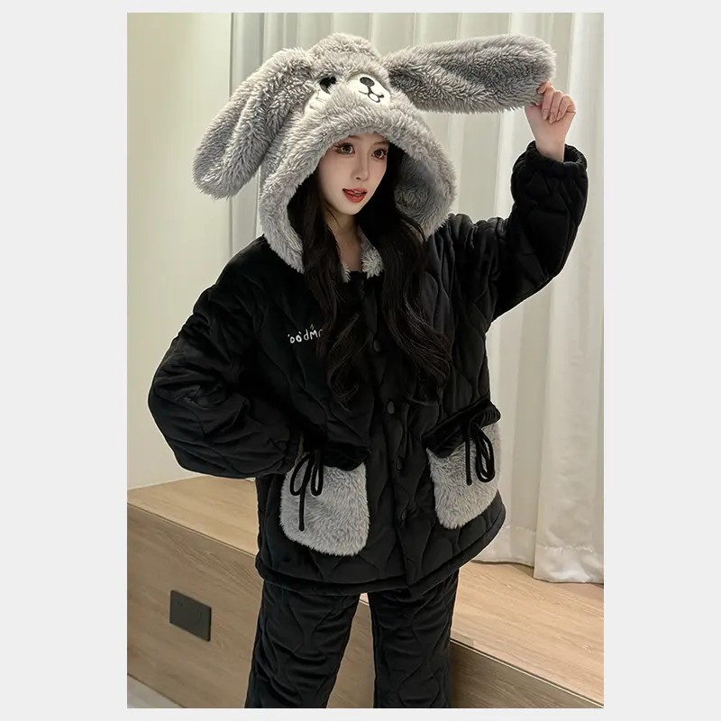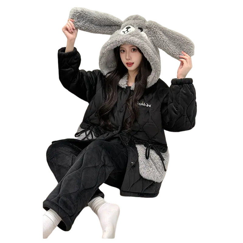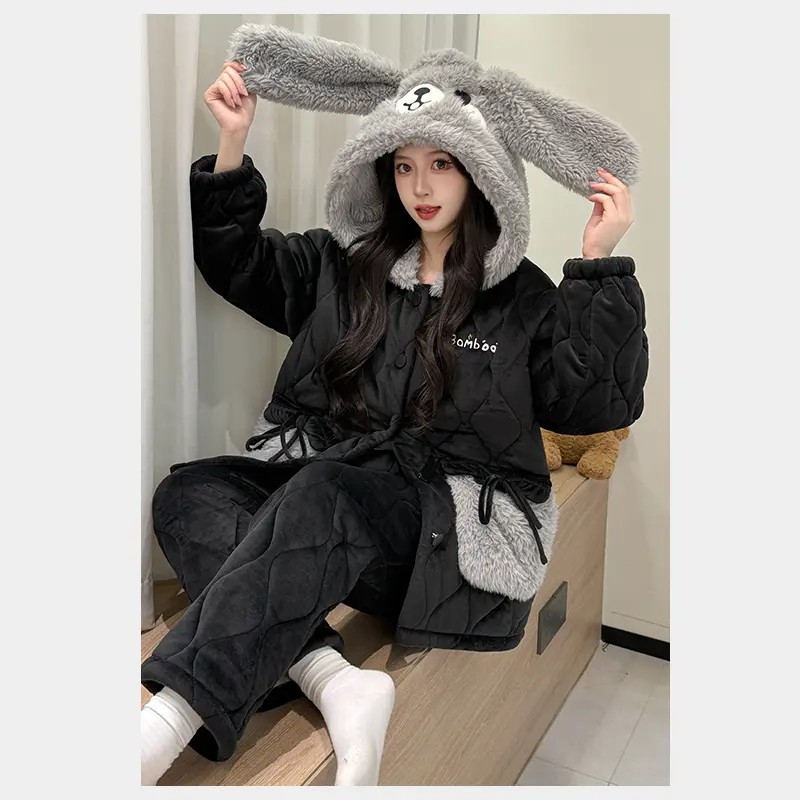 睡衣女冬季加厚加绒2025新款珊瑚绒三层夹棉女生冬天可外穿家居服