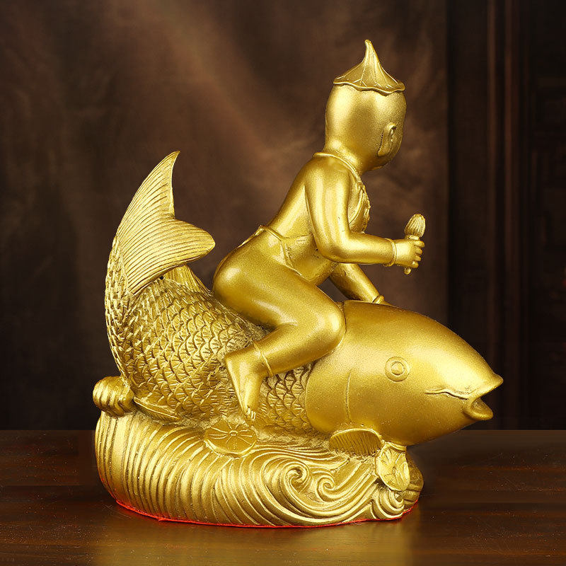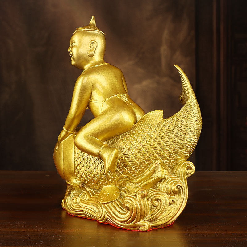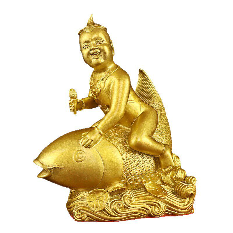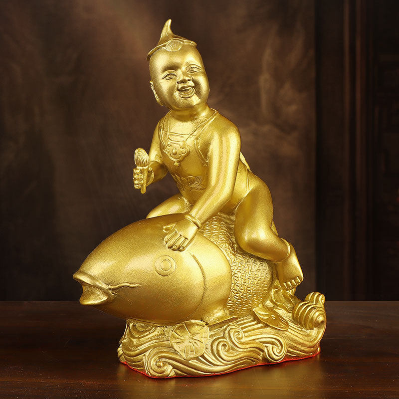 纯黄铜鲤鱼摆件家居客厅童子骑鱼玄关摆件年年有鱼桌面工艺品装饰
