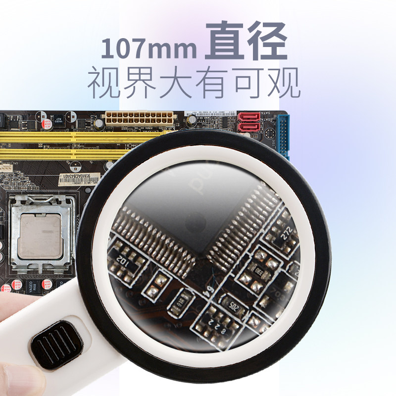 陌华放大镜老人阅读高清60倍珠宝鉴定电子芯片维修专用50倍带灯手持式超大直径高倍率非1000倍高透光玻璃镜片