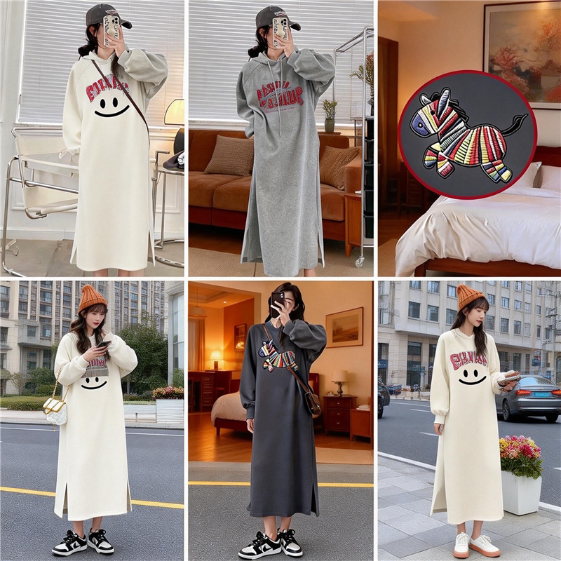 孕妇装秋冬季清仓长袖连衣裙韩版宽松遮肚过膝长款下摆开叉裙子