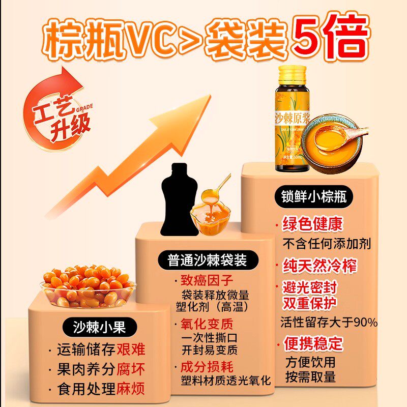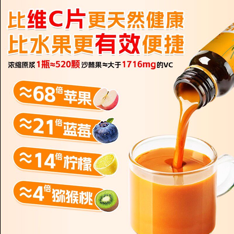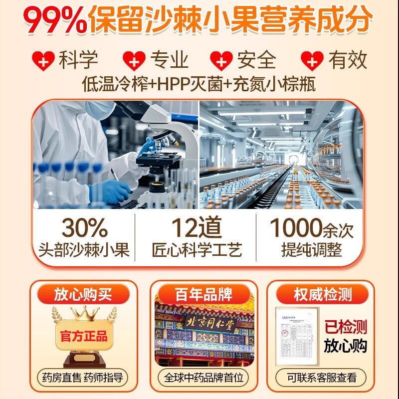 北京同仁堂沙棘原浆果沙棘汁液鲜果油小果原汁VC官方正品饮料植物