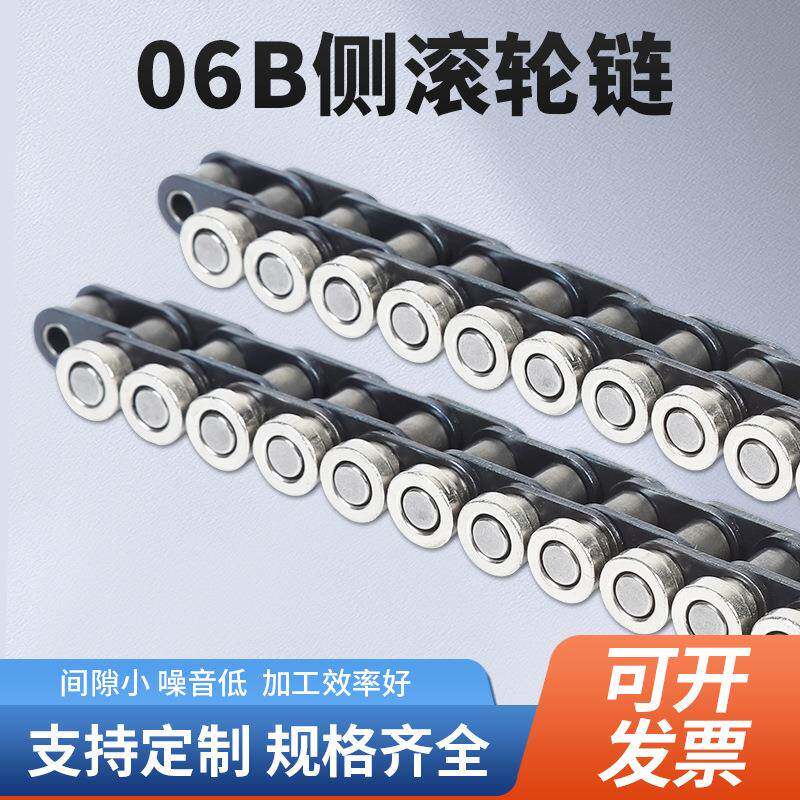 工业输送链条3分侧边带导轮滚轮06B/08A/10A插件线波峰回流焊链条