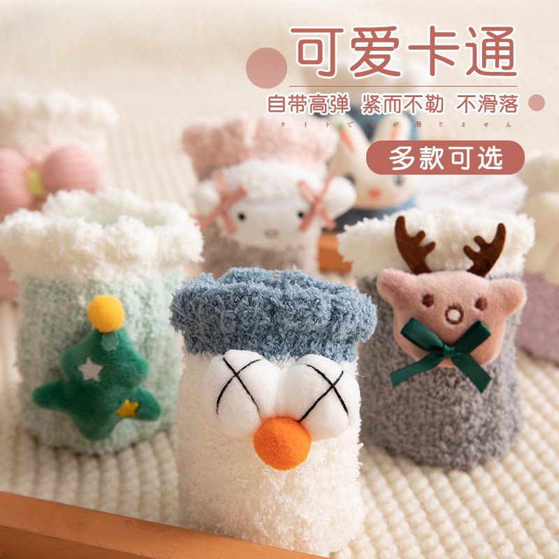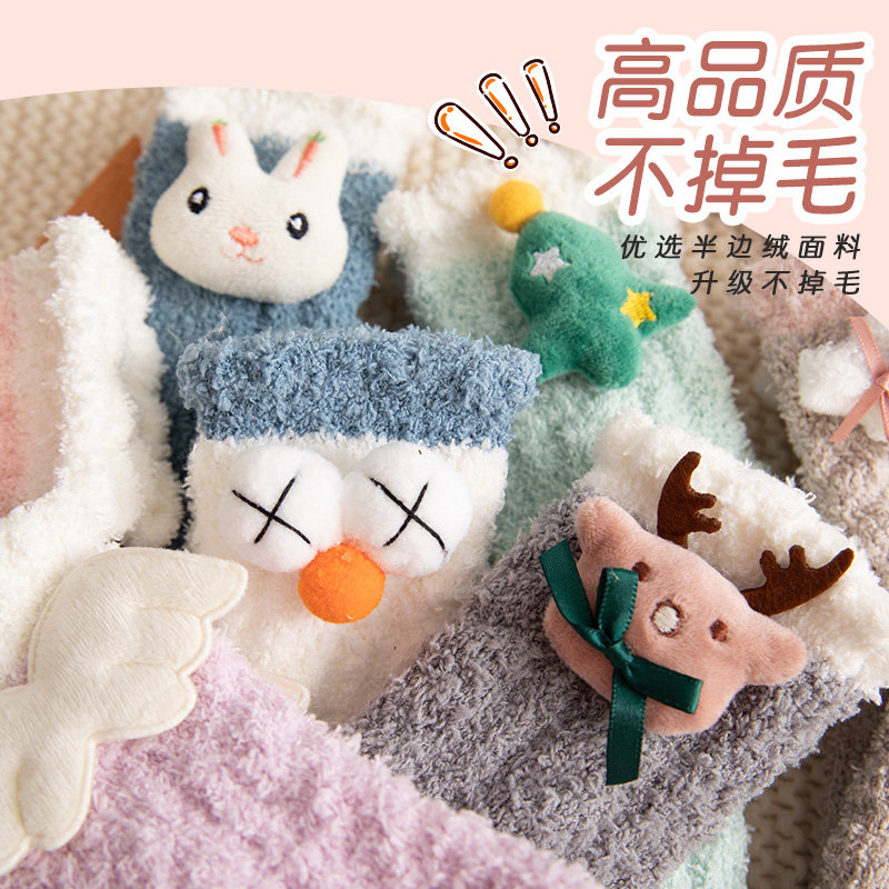 珊瑚绒袜子女冬季加厚加绒保暖地板袜睡眠月子袜秋冬新款睡觉袜子