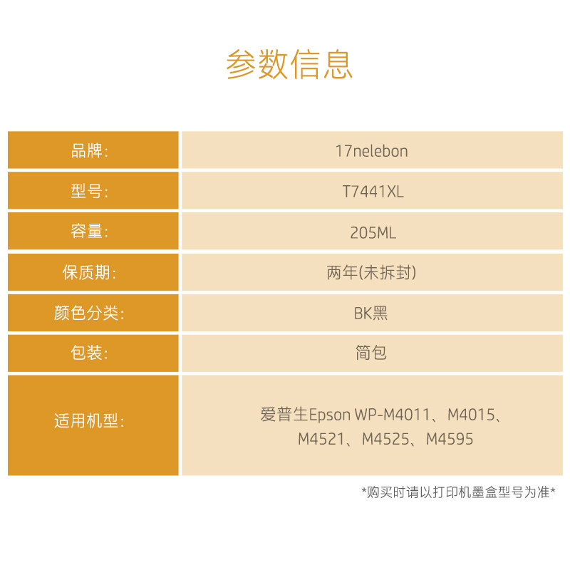 NBN适用于爱普生T7441墨盒 WP-M4011 M4015 M4521 M4525 M4595DNF打印机颜料墨水墨盒T6710废墨仓维护箱
