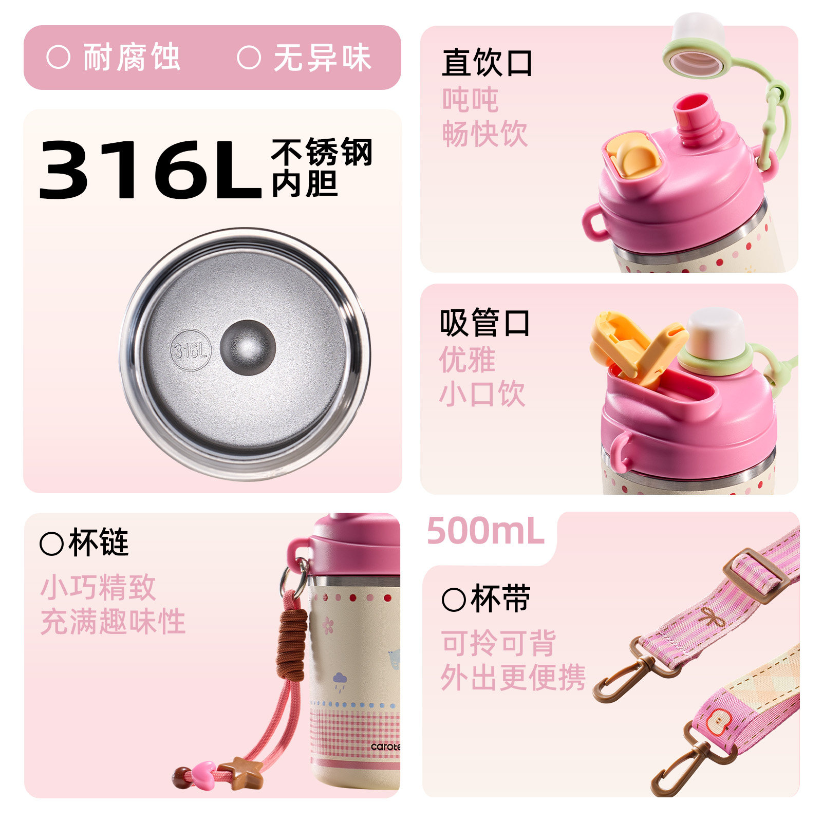 卡罗特保温杯女生水杯高颜值可爱咖啡杯儿童吸管杯子生日圣诞礼物