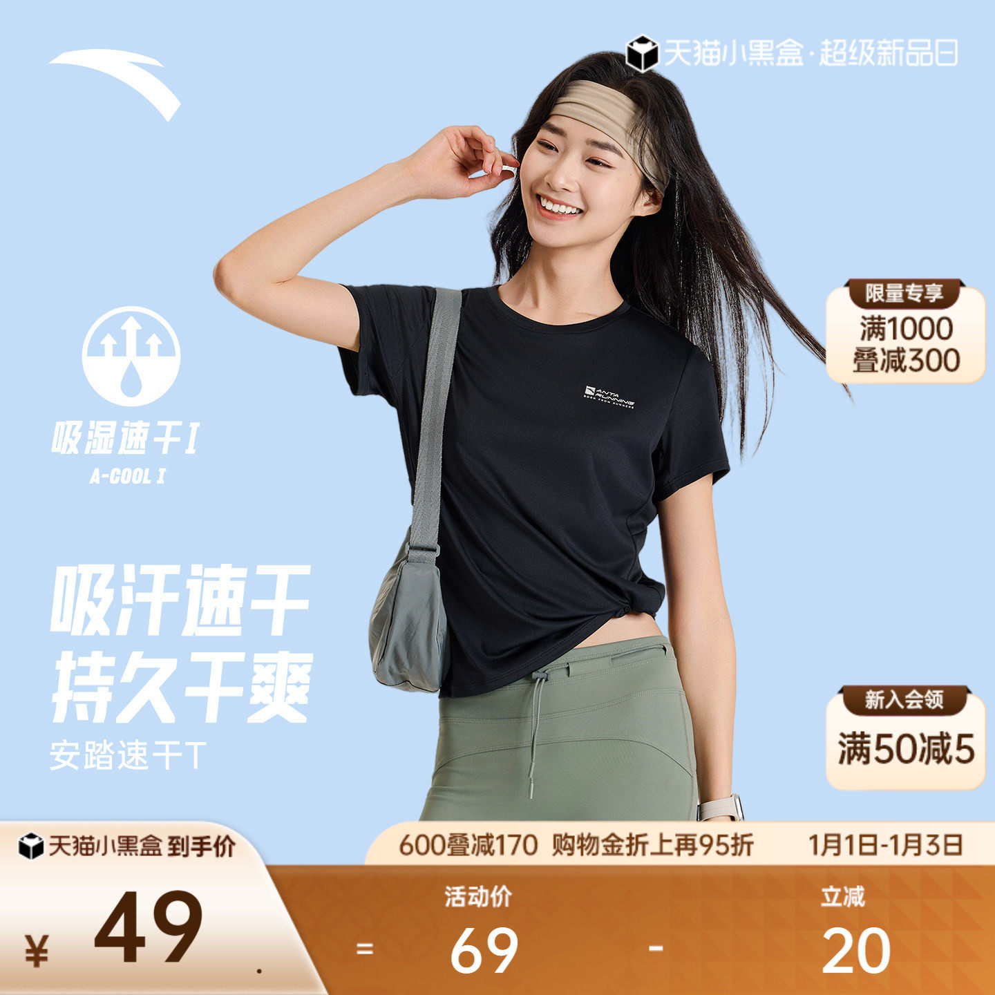 安踏速干T丨正肩训练短袖女夏季透气吸汗跑步T恤半袖健身运动上衣