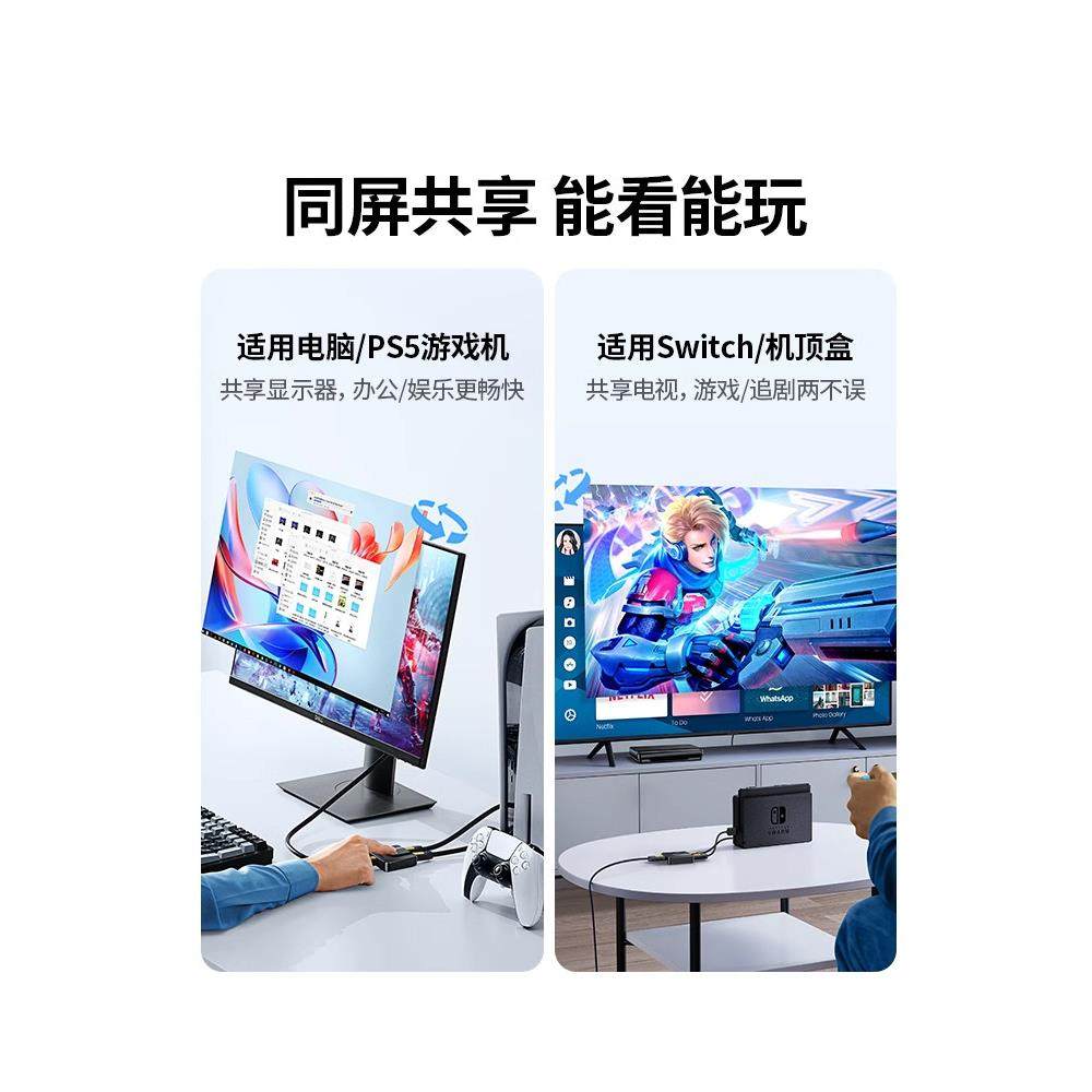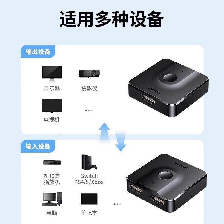 绿联HDMI一对二切换器二合一出Hdml高清分路器4K电视二合一拖放二