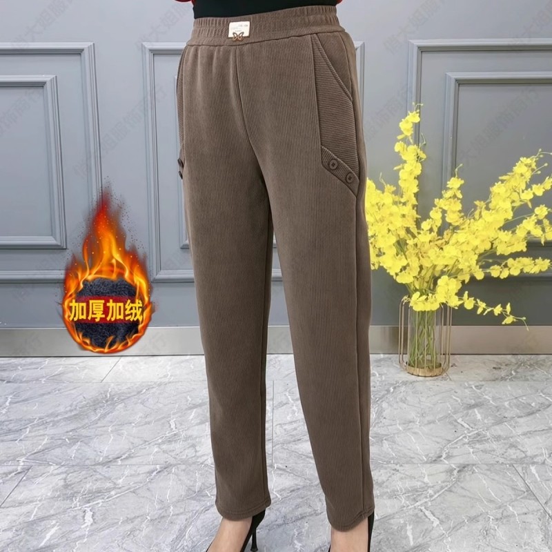 中年妈妈裤子秋冬季2024新款加绒加厚时尚洋气休闲显瘦小脚哈伦裤