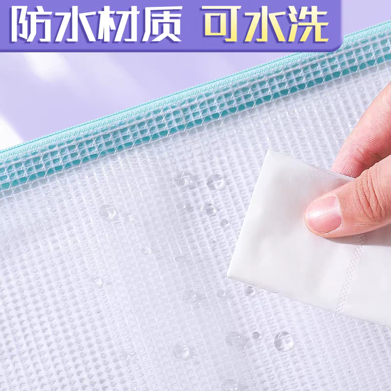网格文件袋加厚透明网格拉链袋A4试卷收纳袋学生用考试文具袋防水笔袋办公用品批发公文档案袋资料袋包邮