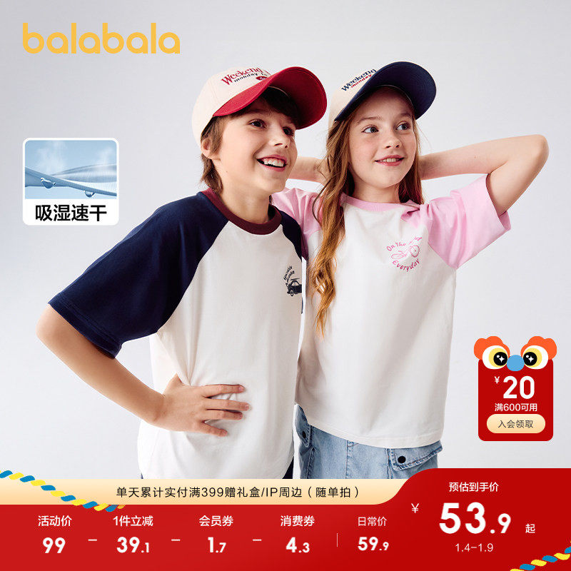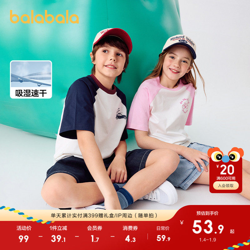 巴拉巴拉童装儿童短袖T恤男童上衣中幼童女童2025新款夏速干纯棉