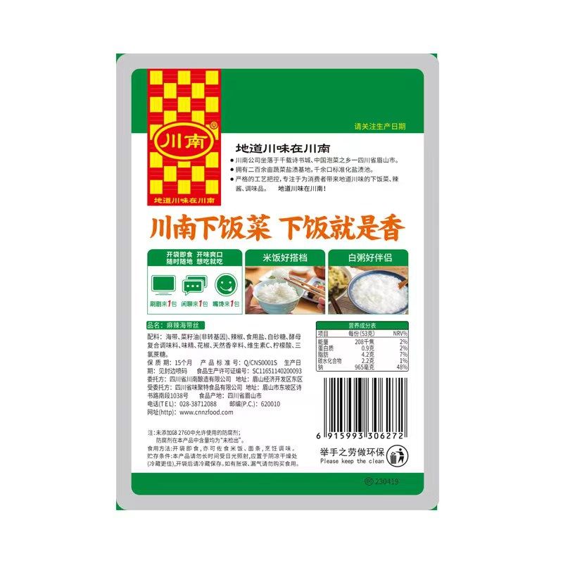 川南麻辣海带丝53g袋装小零食下饭菜开味菜零食榨菜小咸菜酸辣