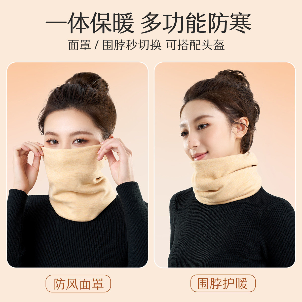 羊毛德绒蚕丝围脖女秋冬季加厚保暖护颈户外骑行防寒套头围巾脖套