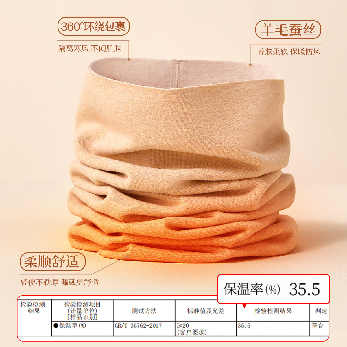 羊毛蚕丝德绒柔软保暖围脖舒适显高级