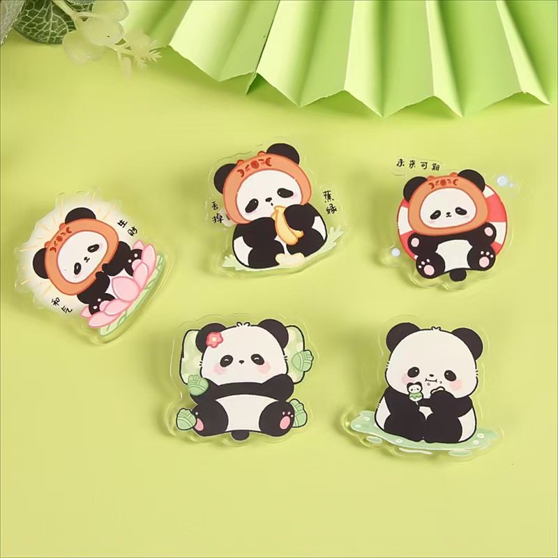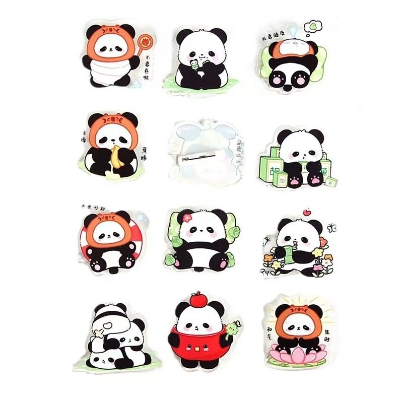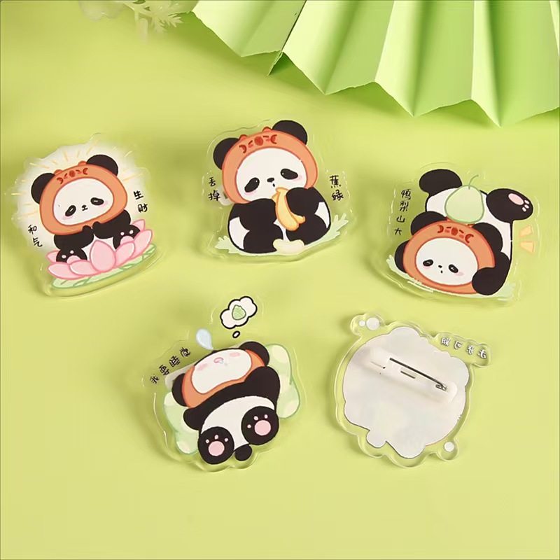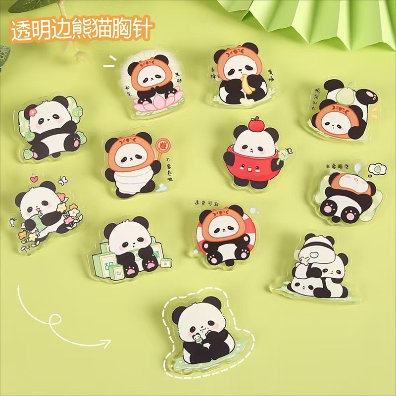 透明卡通熊猫胸针装饰别针亚克力徽章学生励志文字饰品小礼物