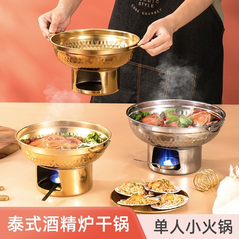 酒精炉子小火锅单人干锅锅具锅仔一人小铜锅泰式冬阴功锅汤锅商用