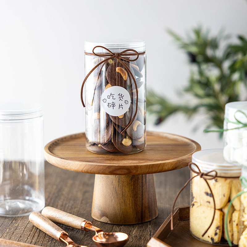 曲奇饼干包装盒食品级透明塑料密封罐圆形盒子雪花酥蔓越莓包装桶