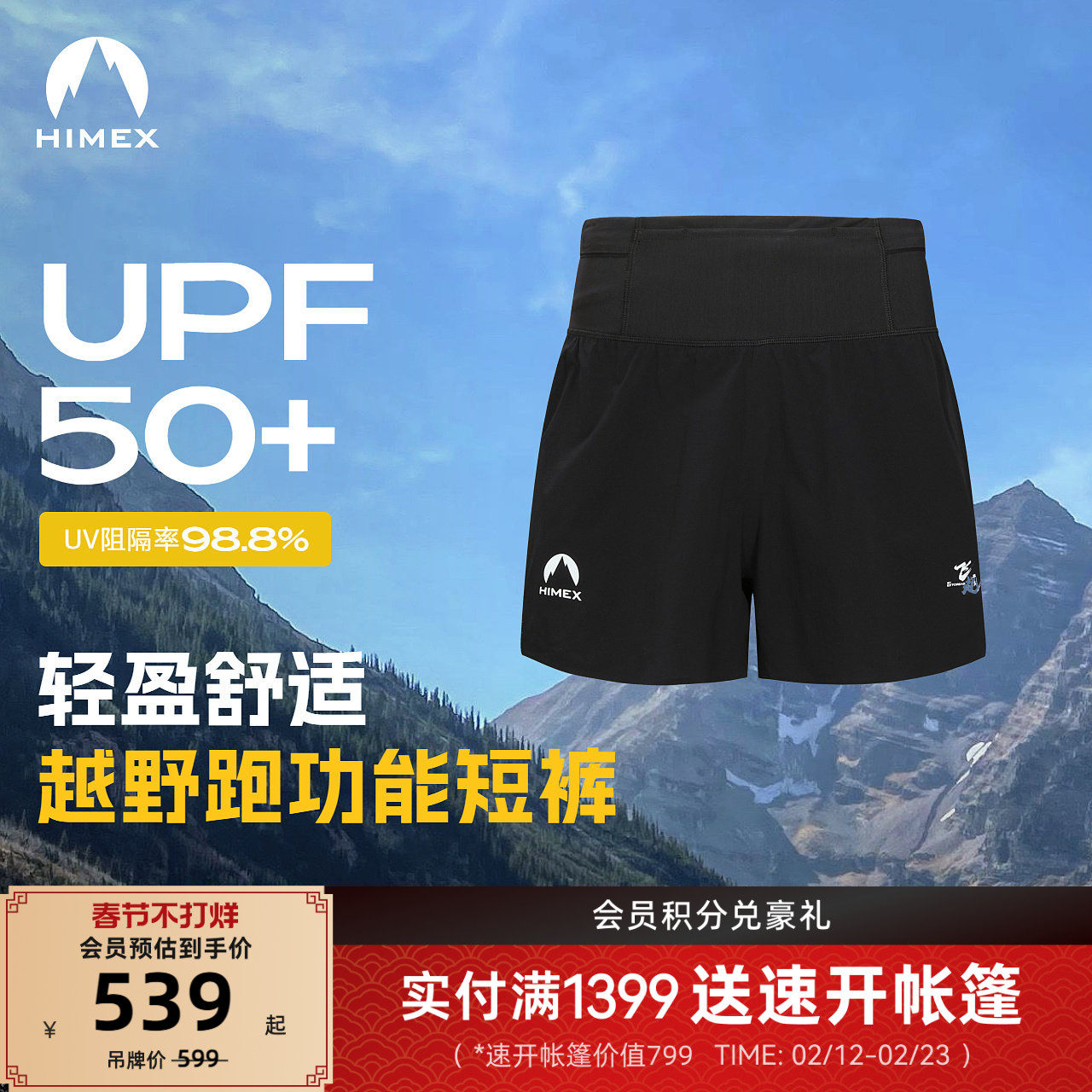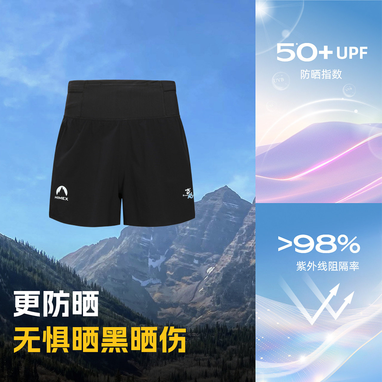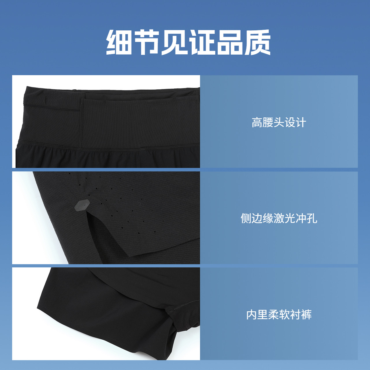 探路者男式越野跑功能短裤双层带内衬UPF50+防晒弹力运动短裤女