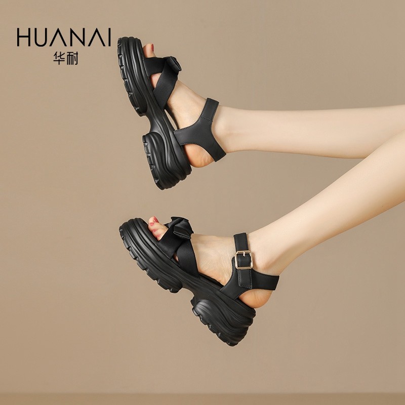 华耐厚底凉鞋女夏外穿2025新款超火小个子增高轻便运动休闲沙滩鞋