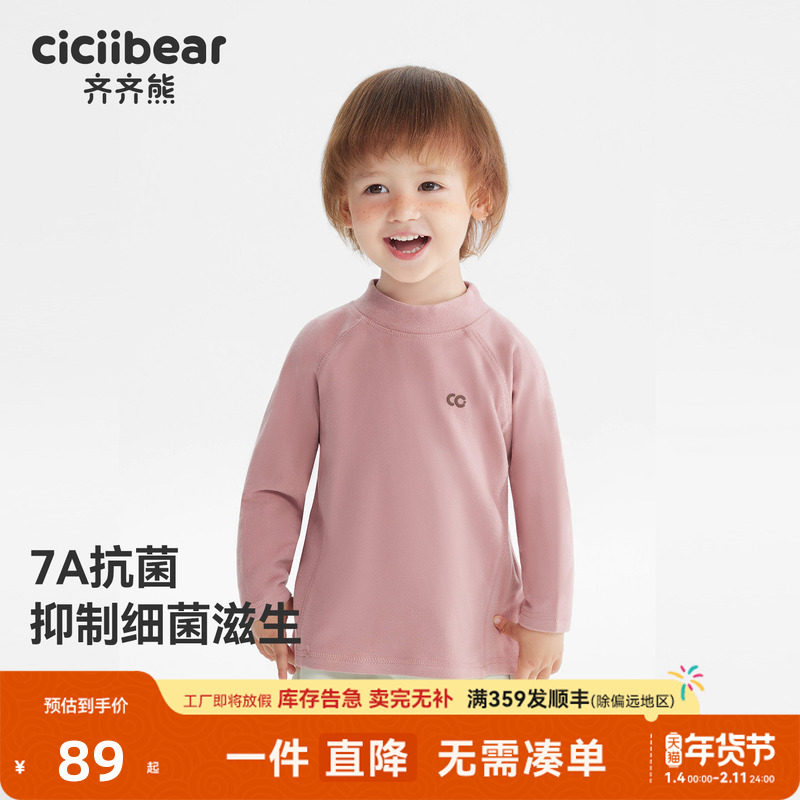 [7A抗菌发热]齐齐熊宝宝t恤长袖冬款男童打底衫冬季童装衣服内搭