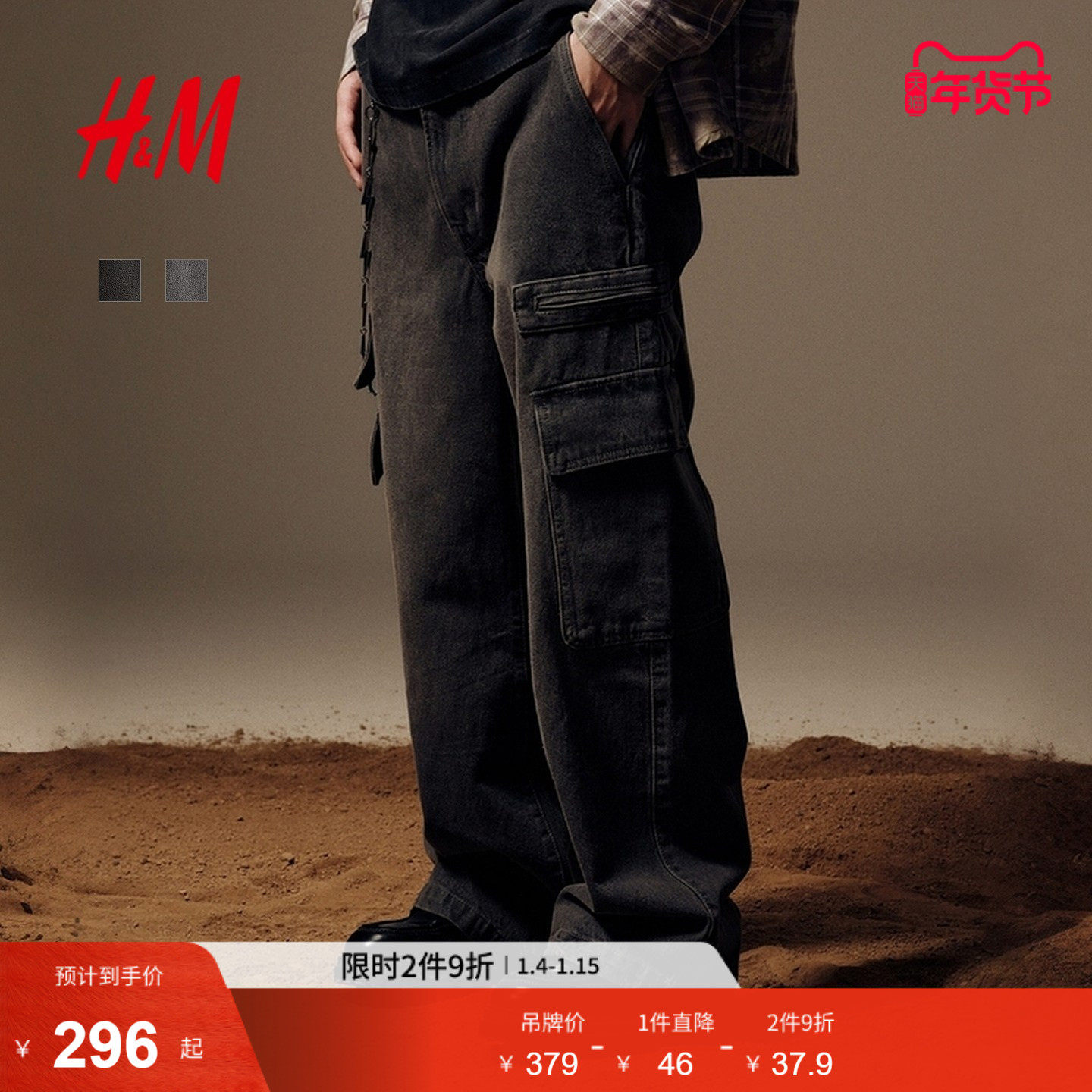 HM男装牛仔裤冬季通勤简约时尚宽松工装牛仔裤1300919