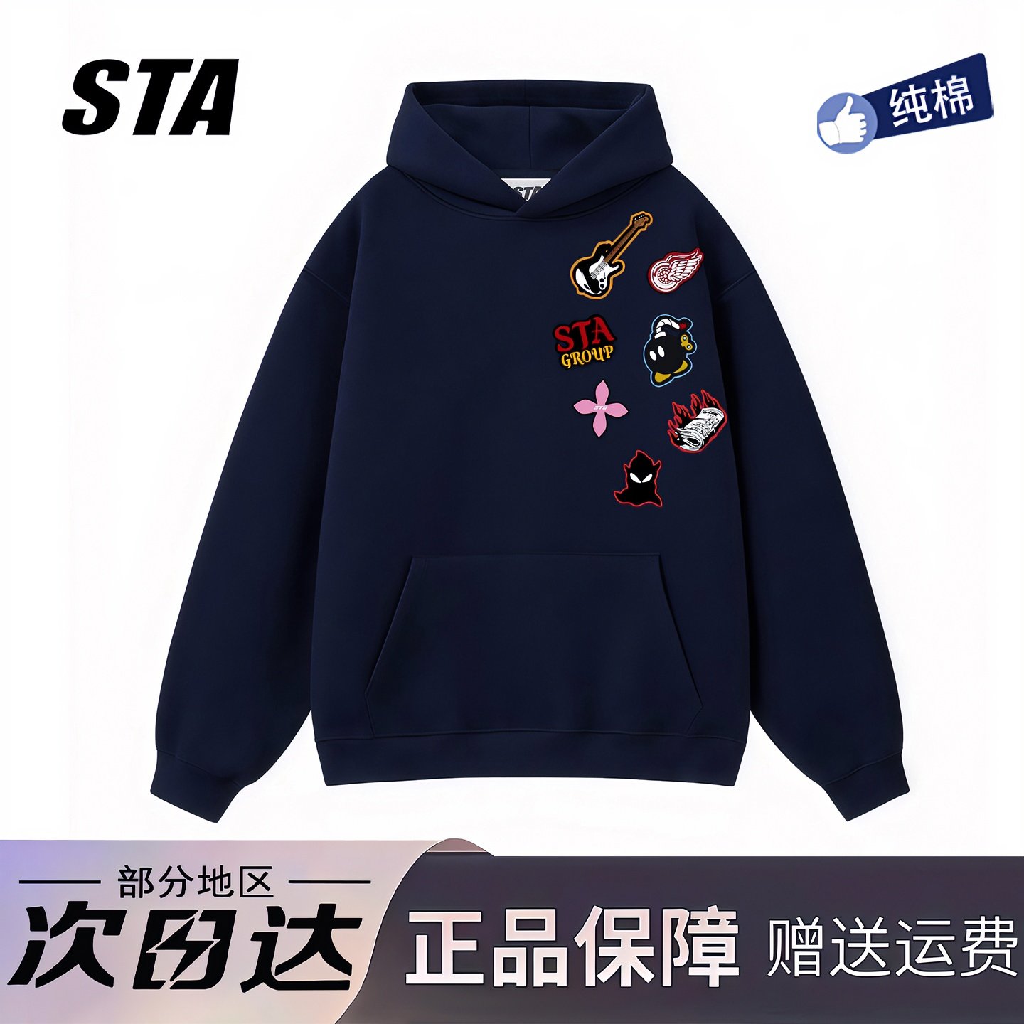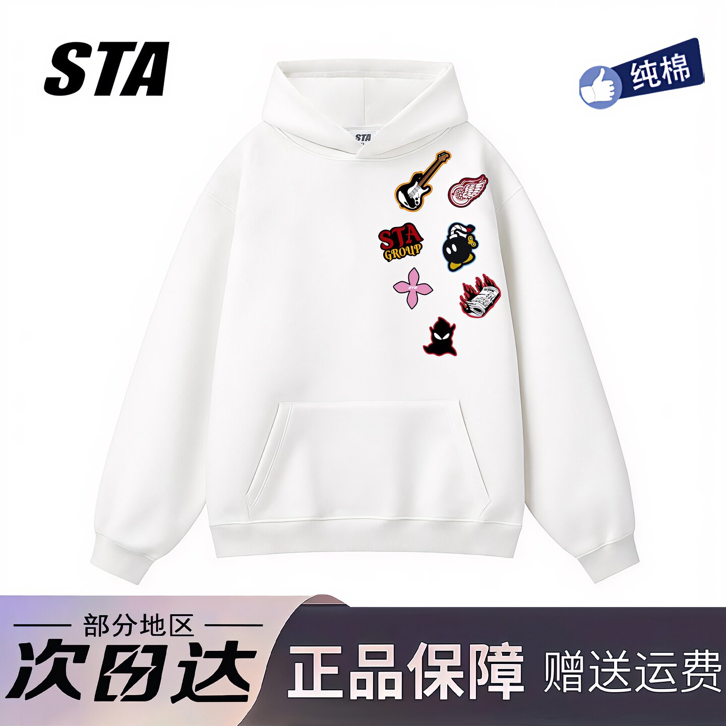 STA旗舰店美式涂鸦印花连帽卫衣男女秋冬季潮牌高街重磅纯棉外套
