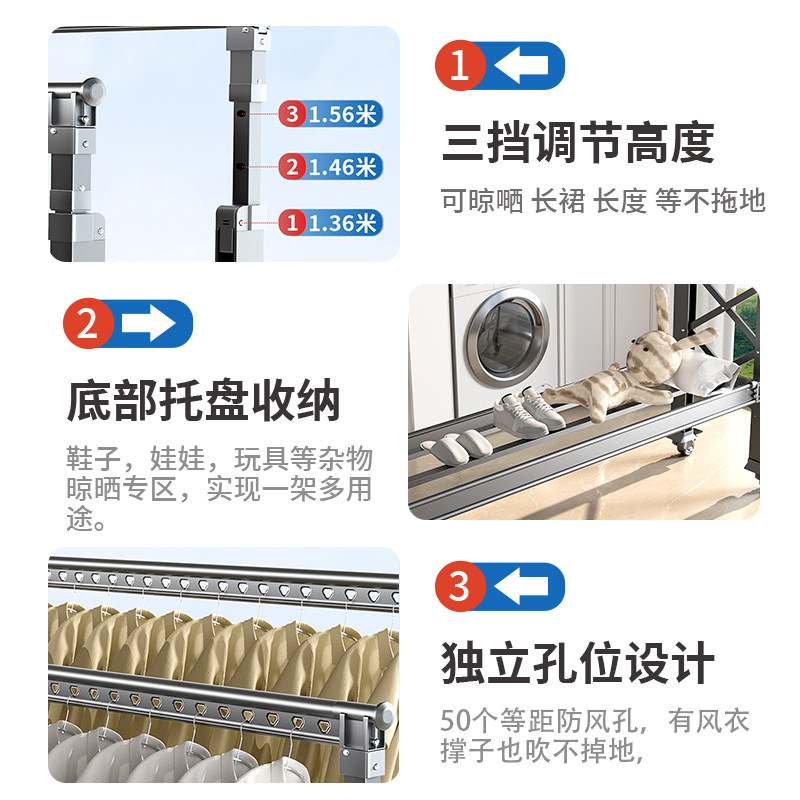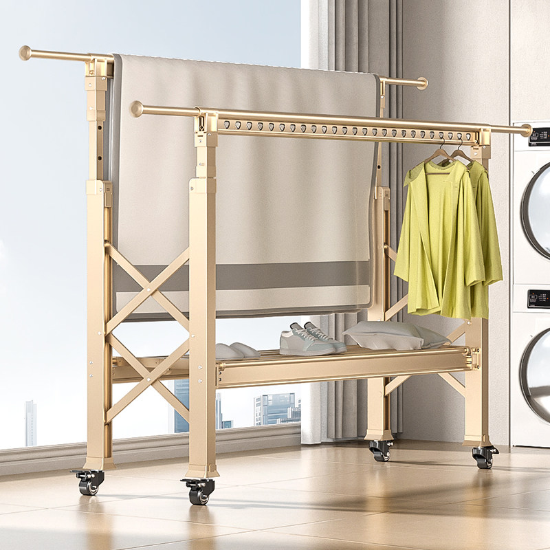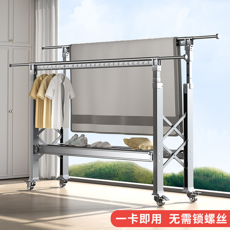 铝合金落地折叠晾衣架室内伸缩折叠家用晾衣杆阳台晒被户外挂衣架