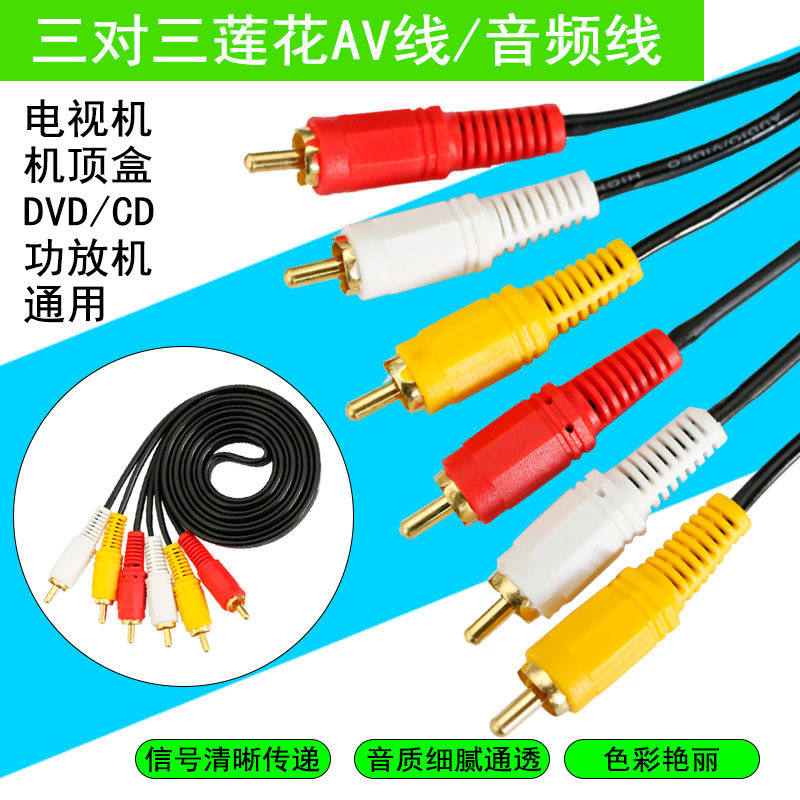 三对三莲花AV线音频线dvd线机顶盒子老电视机信号连接高清红黄白