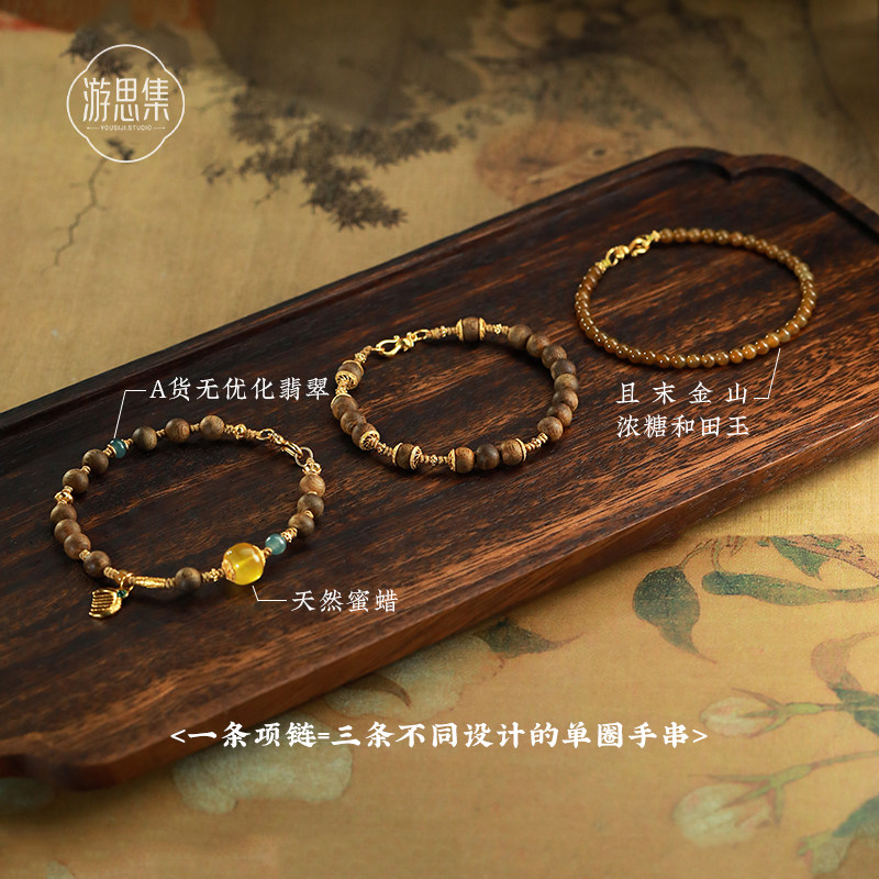 奇楠沉香天然和田玉糖料小众设计师锁骨链女中式国风项链七夕礼物
