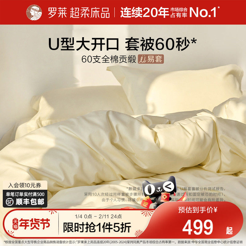 罗莱家纺U易套60支贡缎纯棉全棉秋冬超柔被套床单四件套100%棉