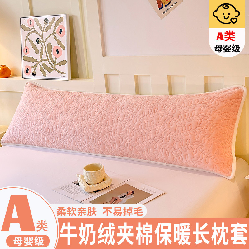 双人长枕套加厚牛奶绒夹棉冬季1.2珊瑚绒1.5加长1.8m情侣夫妻枕头