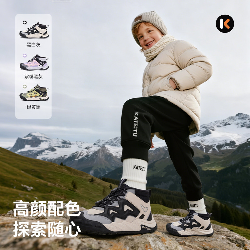 卡特兔童鞋户外儿童运动鞋2025冬季中大童防水防滑保暖儿童棉鞋