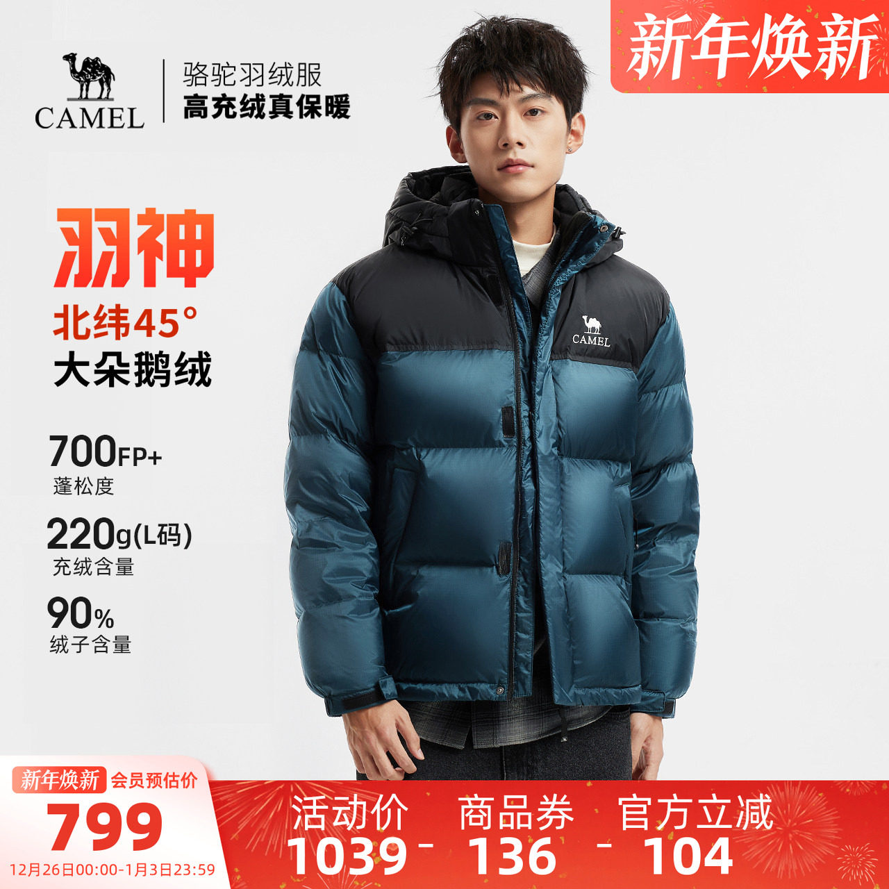 【鹅绒】骆驼羽神PRO 男装羽绒服短款加厚鹅绒面包服新款时尚保暖