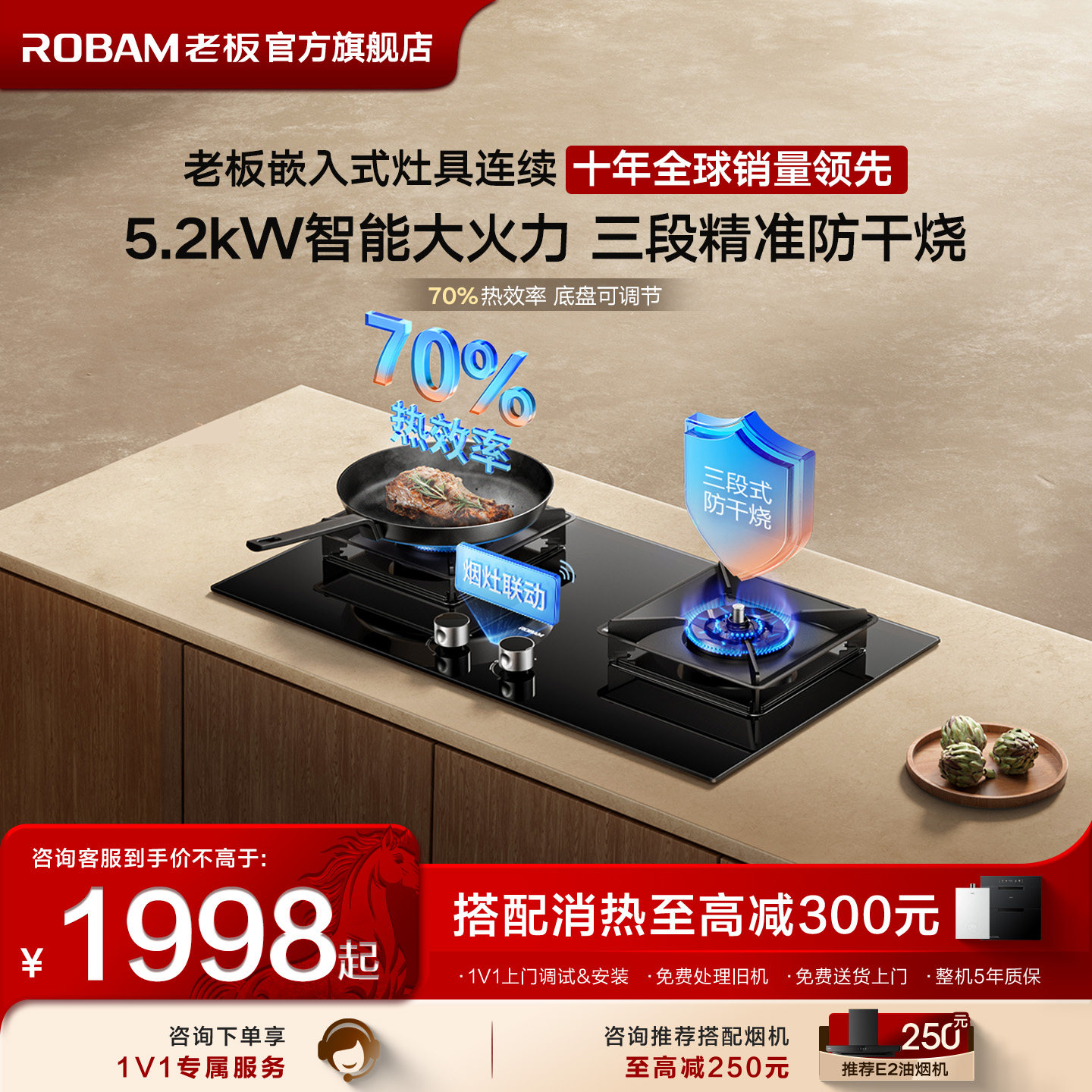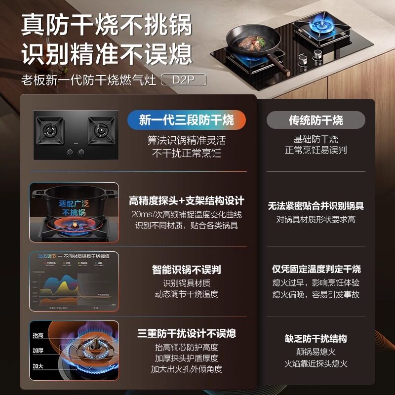 智能联动】老板D2P家用防干烧燃气灶煤气灶双灶台官方旗舰店正品