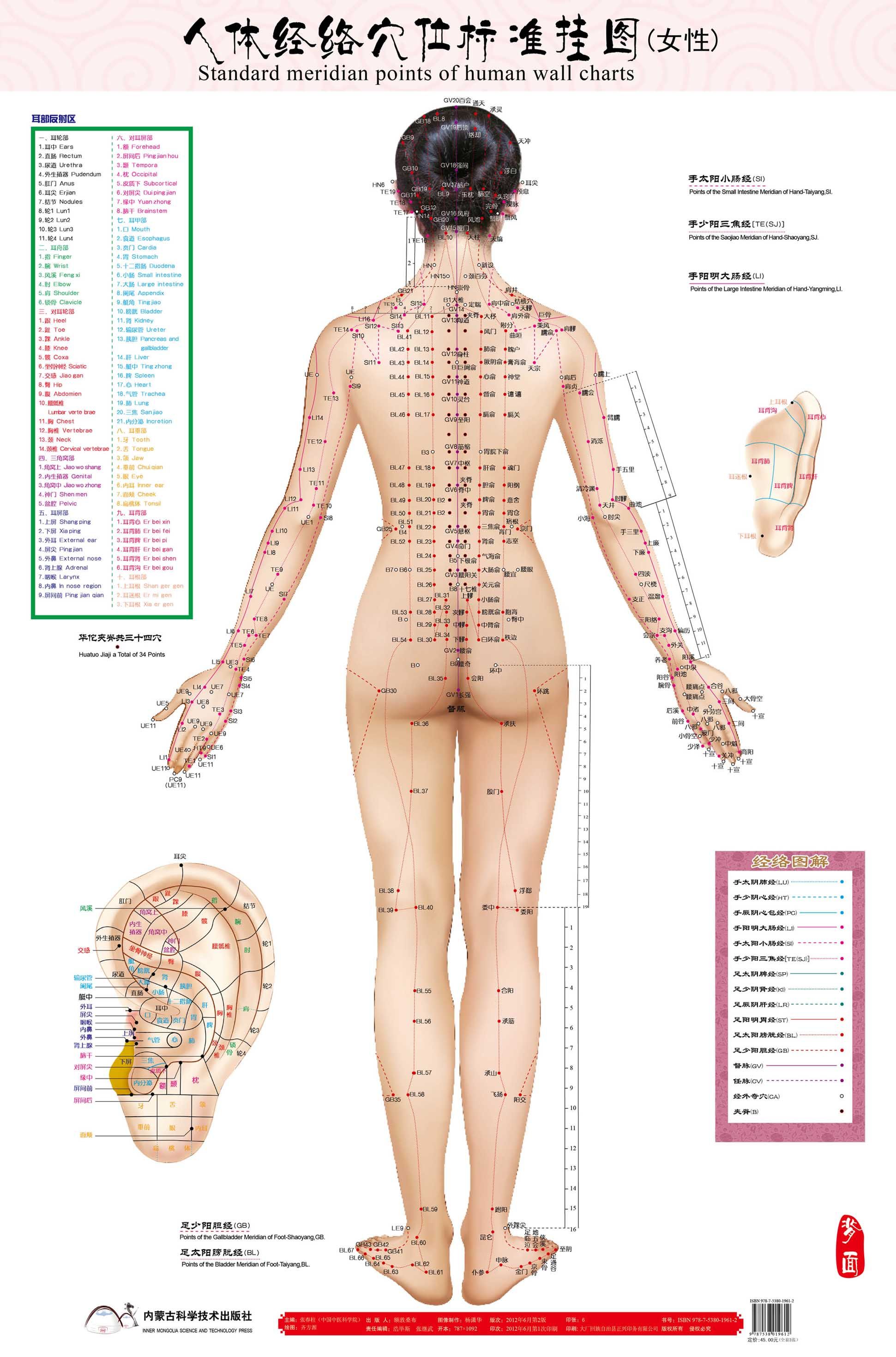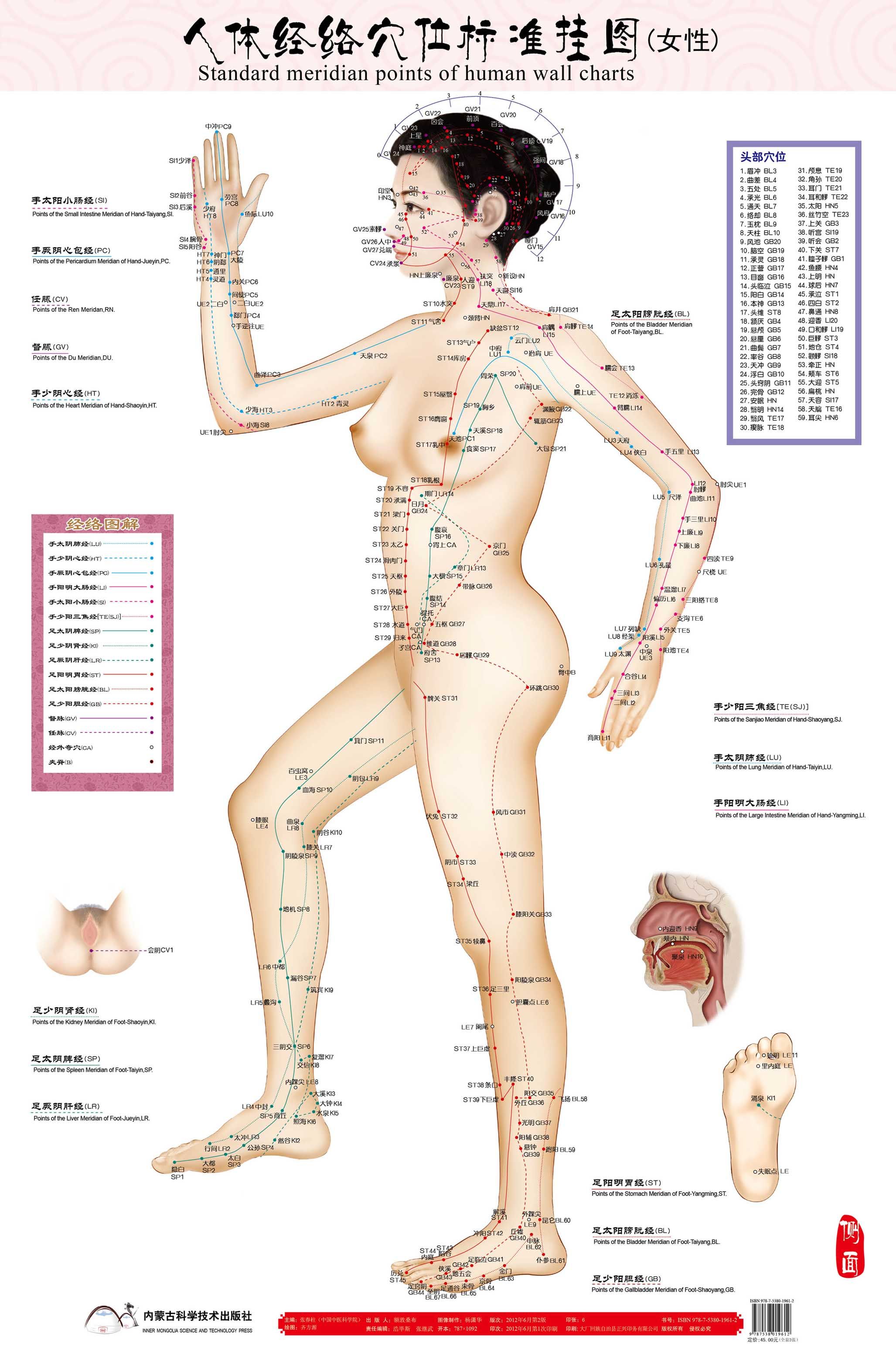 (正品热卖)人体经络穴位标准挂图赠中英文解说册(正背侧3张)