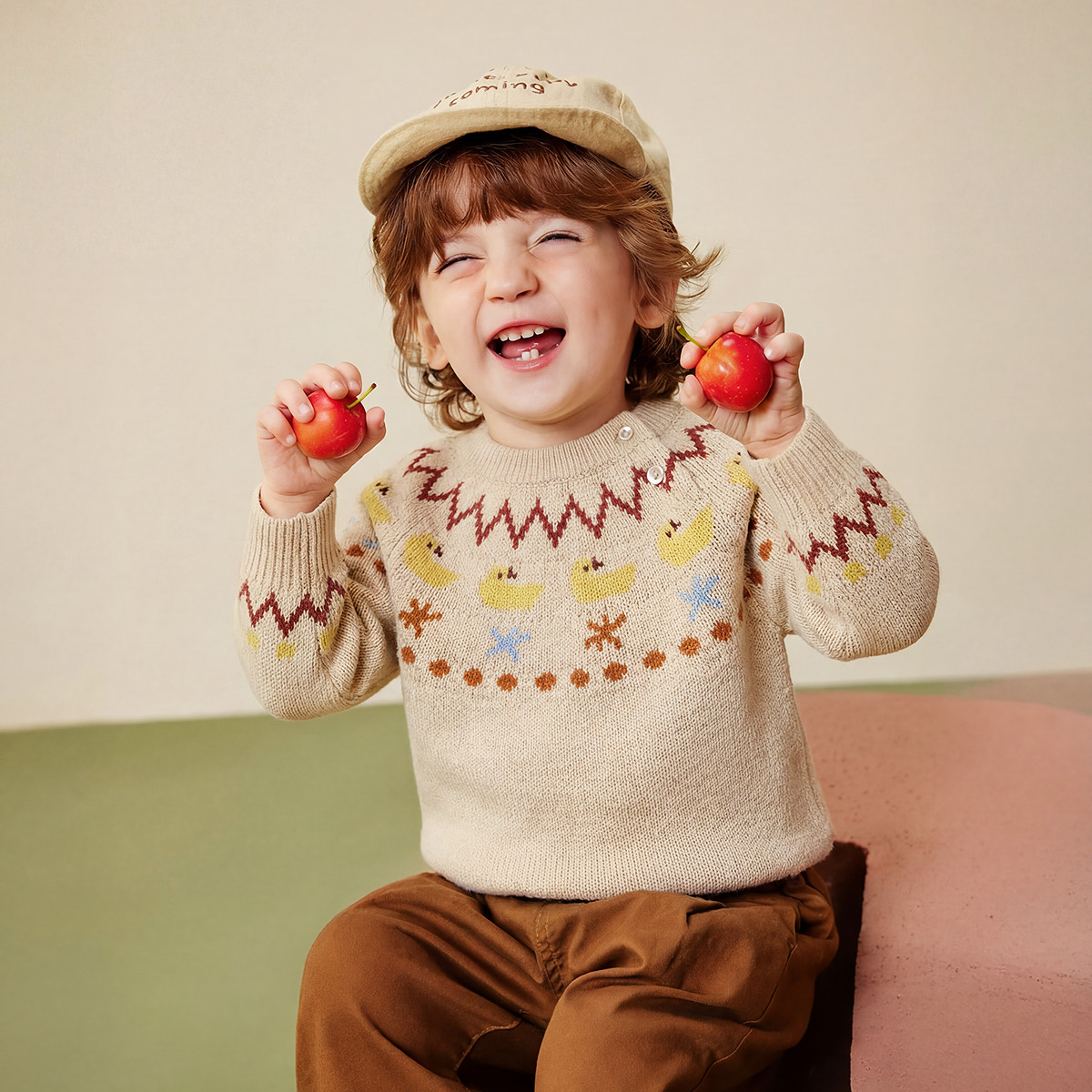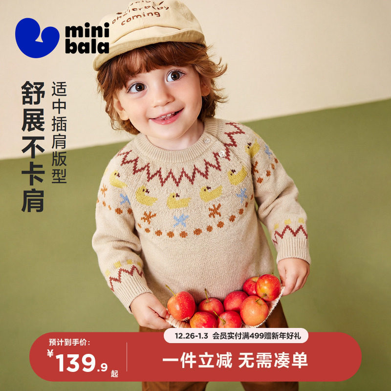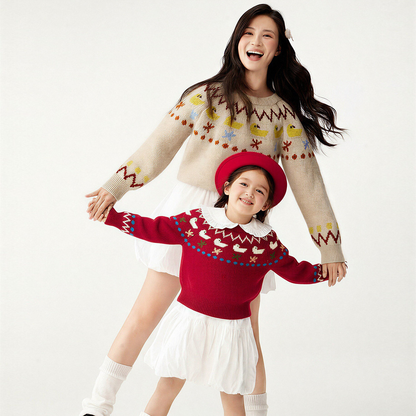 【费尔岛毛衣】迷你巴拉男女童亲子毛衫冬新年红色萌趣艺术家联名