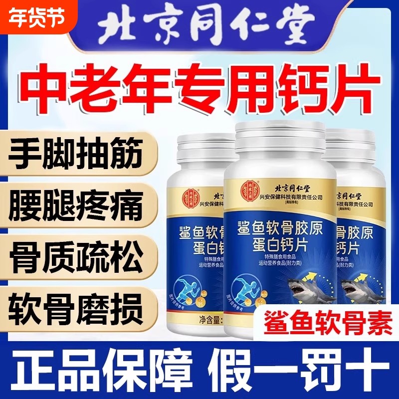 北京同仁堂中老年人钙片腿抽筋骨质疏松钙正品官方旗舰店胶原软骨