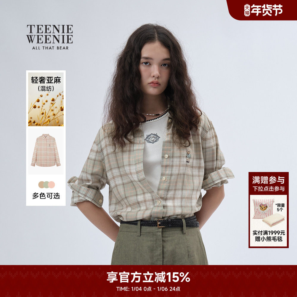 【天丝+亚麻】TeenieWeenie小熊奥莱2025夏新款轻薄气质格纹衬衣