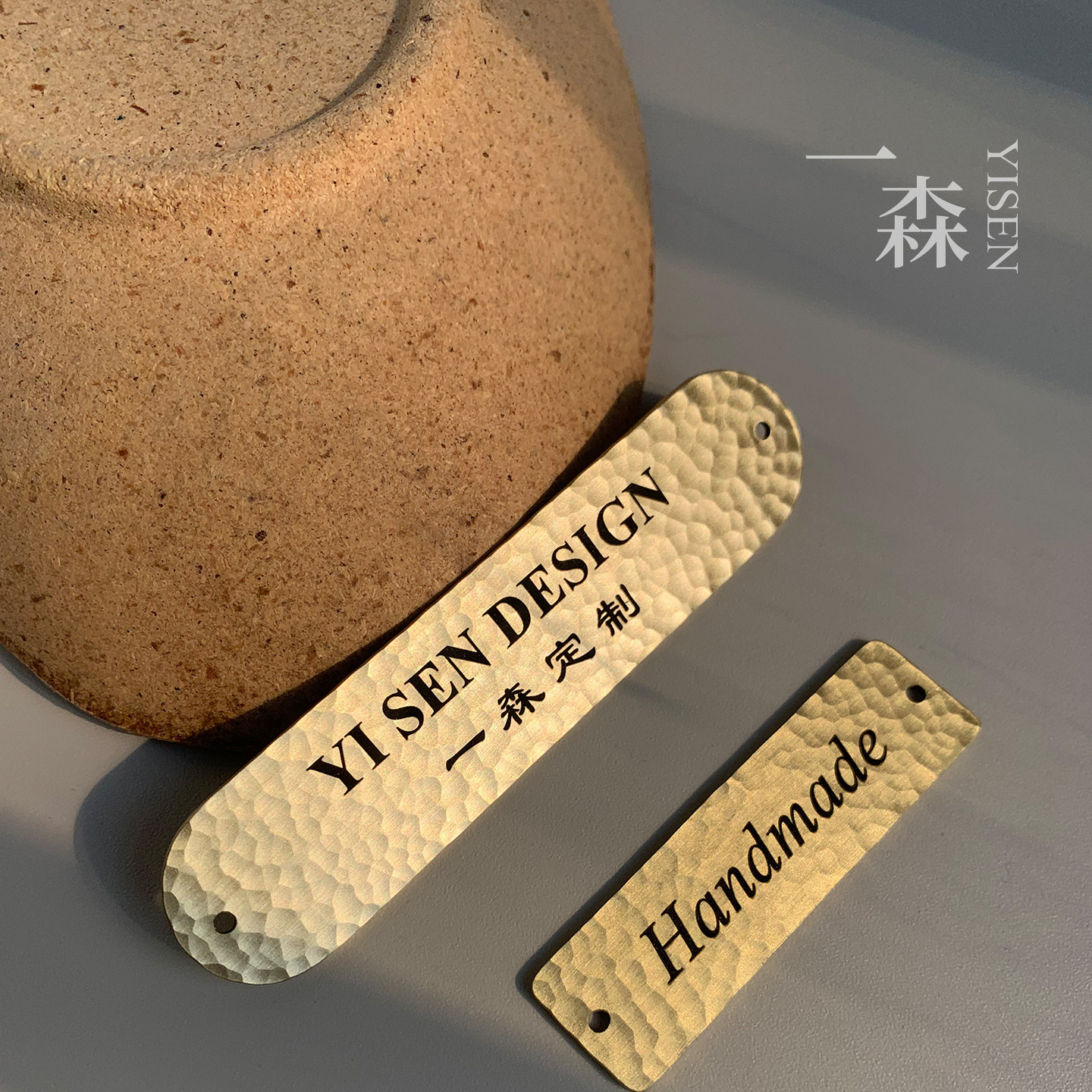 轻奢黄铜标牌手工捶打锤纹鹿角蕨花牌专属定制珠宝LOGO书写铭牌