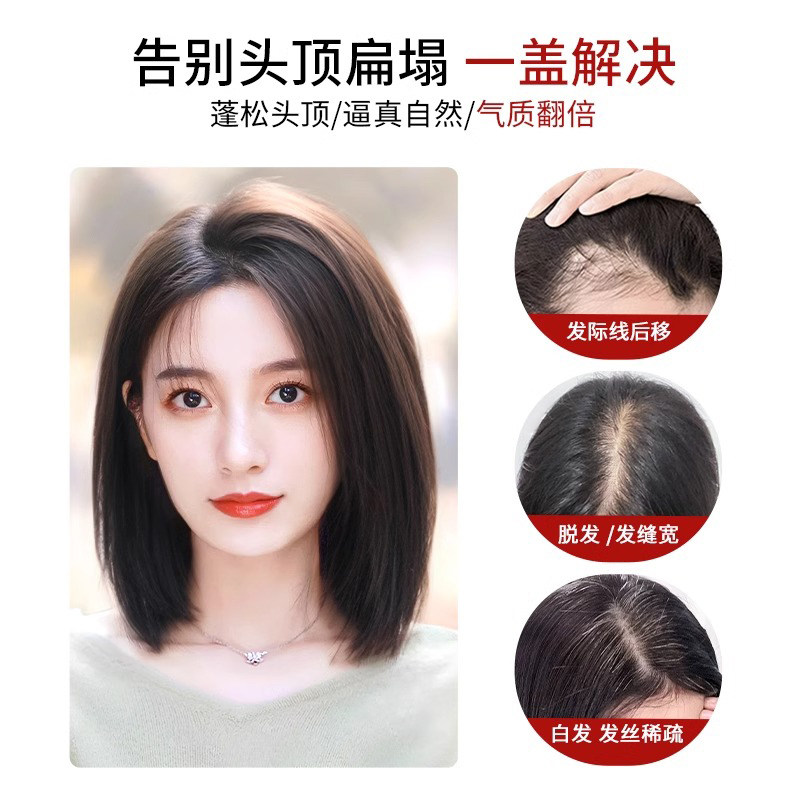 刘海假发女片头顶蓬松真发遮白发自然前额颅顶轻薄无痕增发量八字