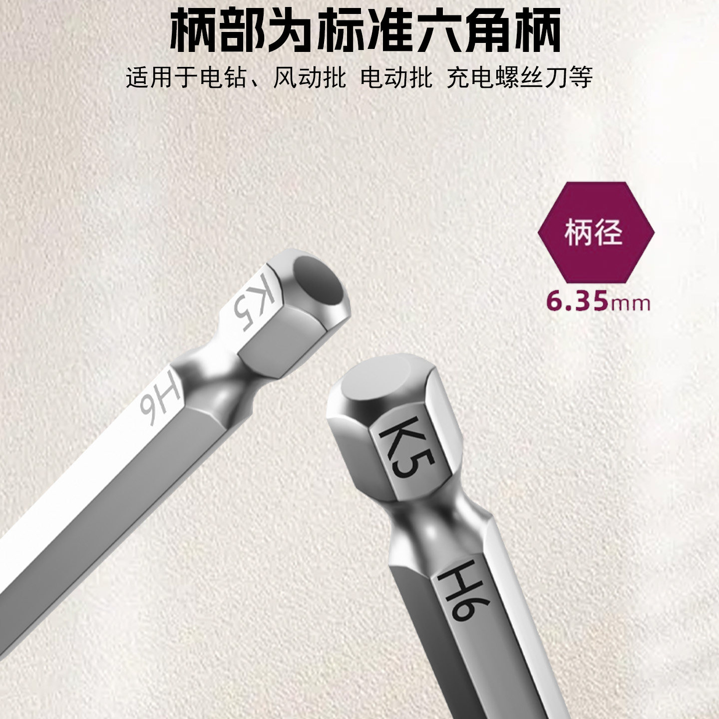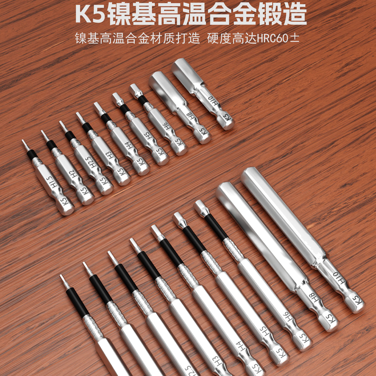 内六角批头气动电动螺丝刀K5强磁铁扳手披头电钻加长套装高硬度
