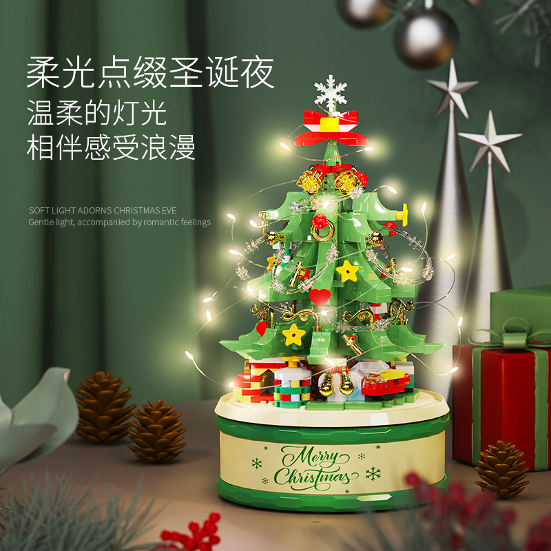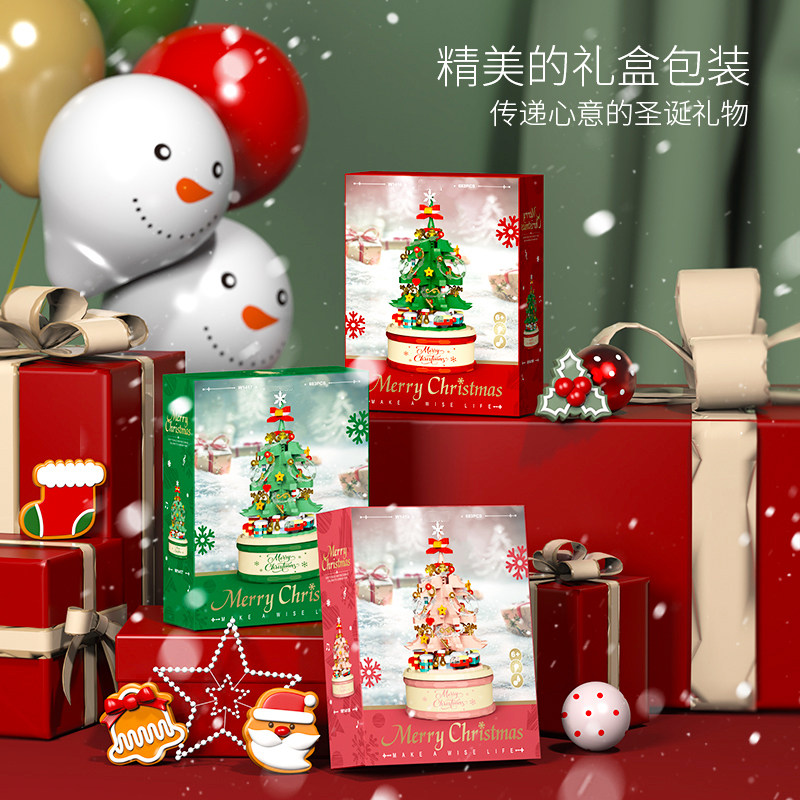 微颗粒圣诞树积木音乐盒儿童益智拼装玩具女孩圣诞节日礼物创意