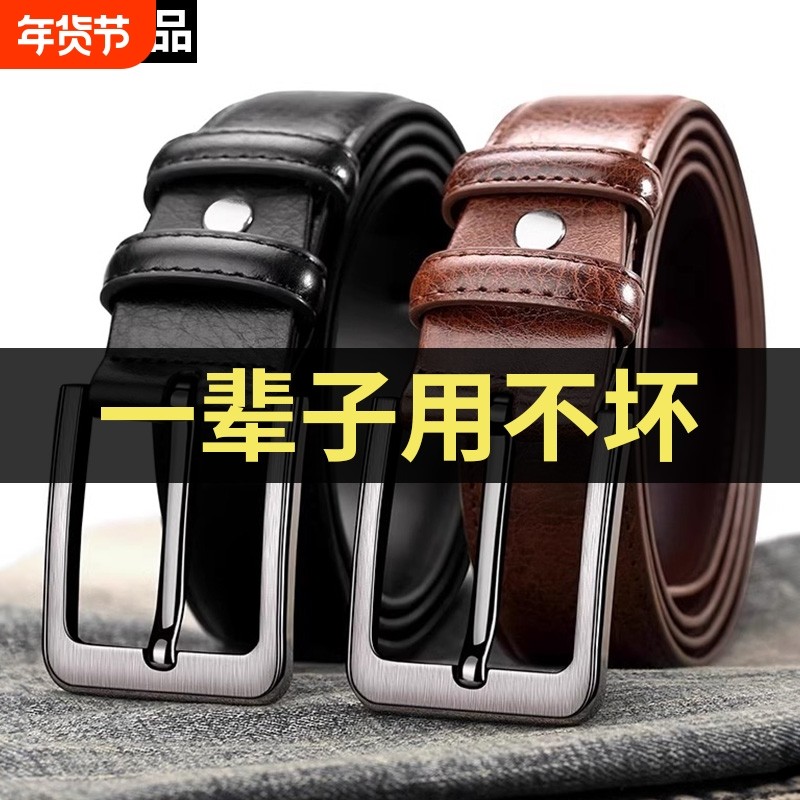 纯牛皮皮带男真皮休闲裤带男牛皮带年轻人针扣牛仔中年腰带男青年