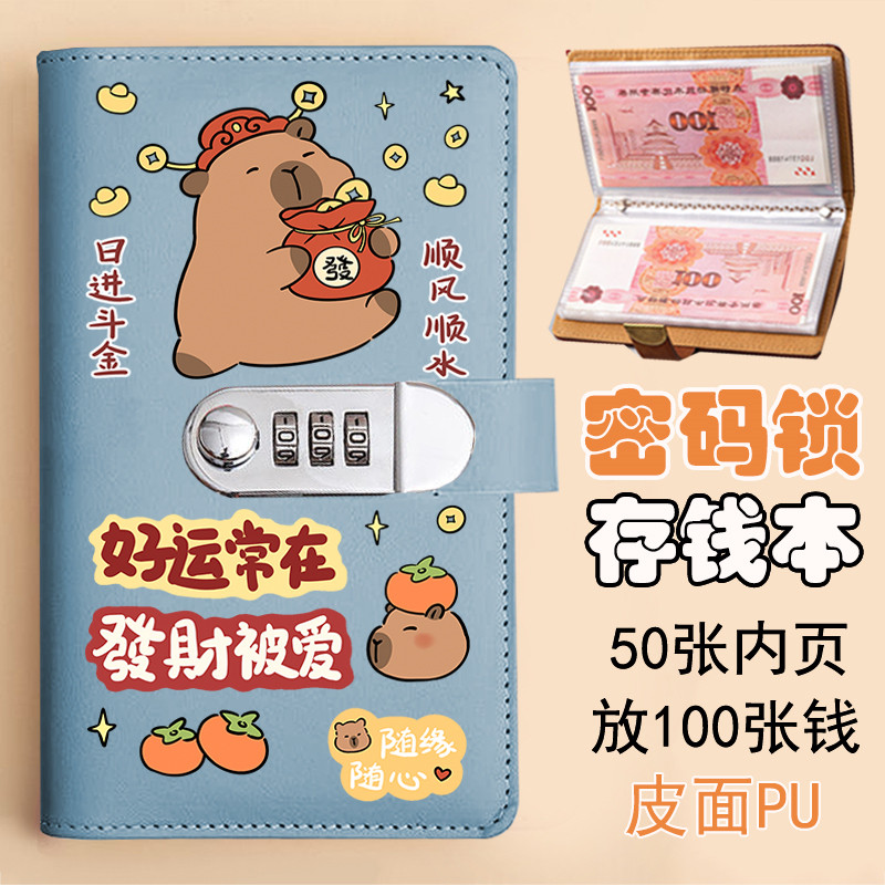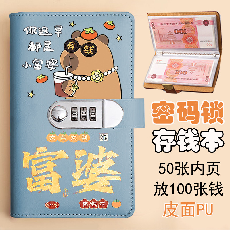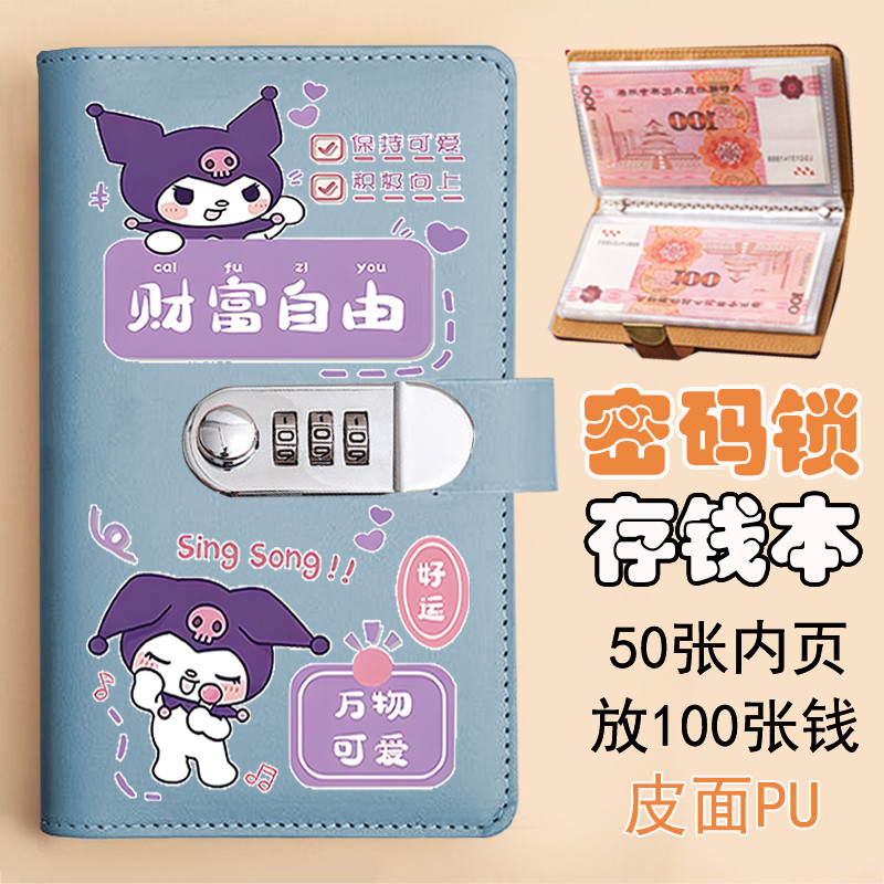 蜡笔小新存钱本小学生大容量零钱收纳袋现金攒钱袋带锁手账本账册