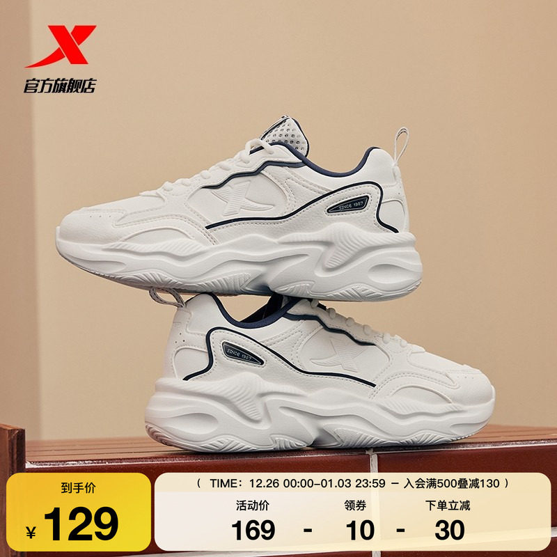 王鹤棣同款丨特步巴斯克2休闲鞋女复古老爹鞋增高运动鞋男鞋棉鞋