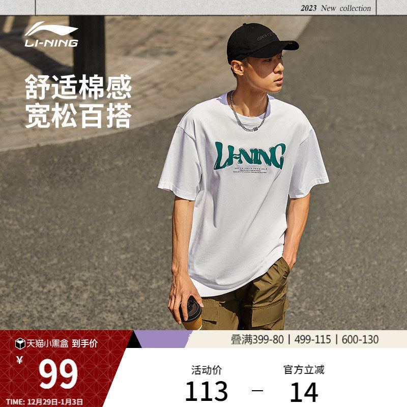 李宁短袖男士夏季官方半袖情侣装运动上衣男装体恤宽松白色T恤女